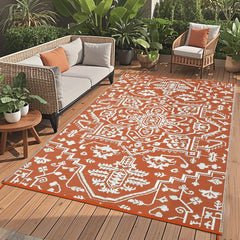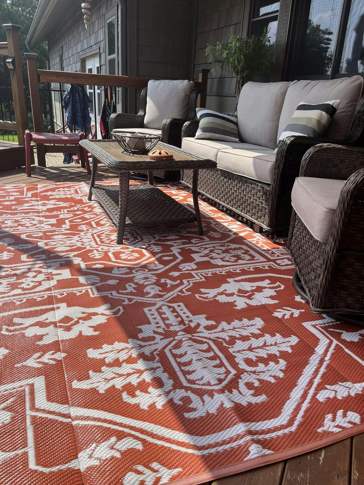 - 【Durable All-Weather Construction】Crafted for outdoor durability, this UV-stabilized area rug resists fading from sun exposure and is built with heat-sealed edges to prevent unraveling or wear. Whether under direct sunlight or facing wet weather, this rug stands up to the elements and remains intact through heavy foot traffic and pet activity.