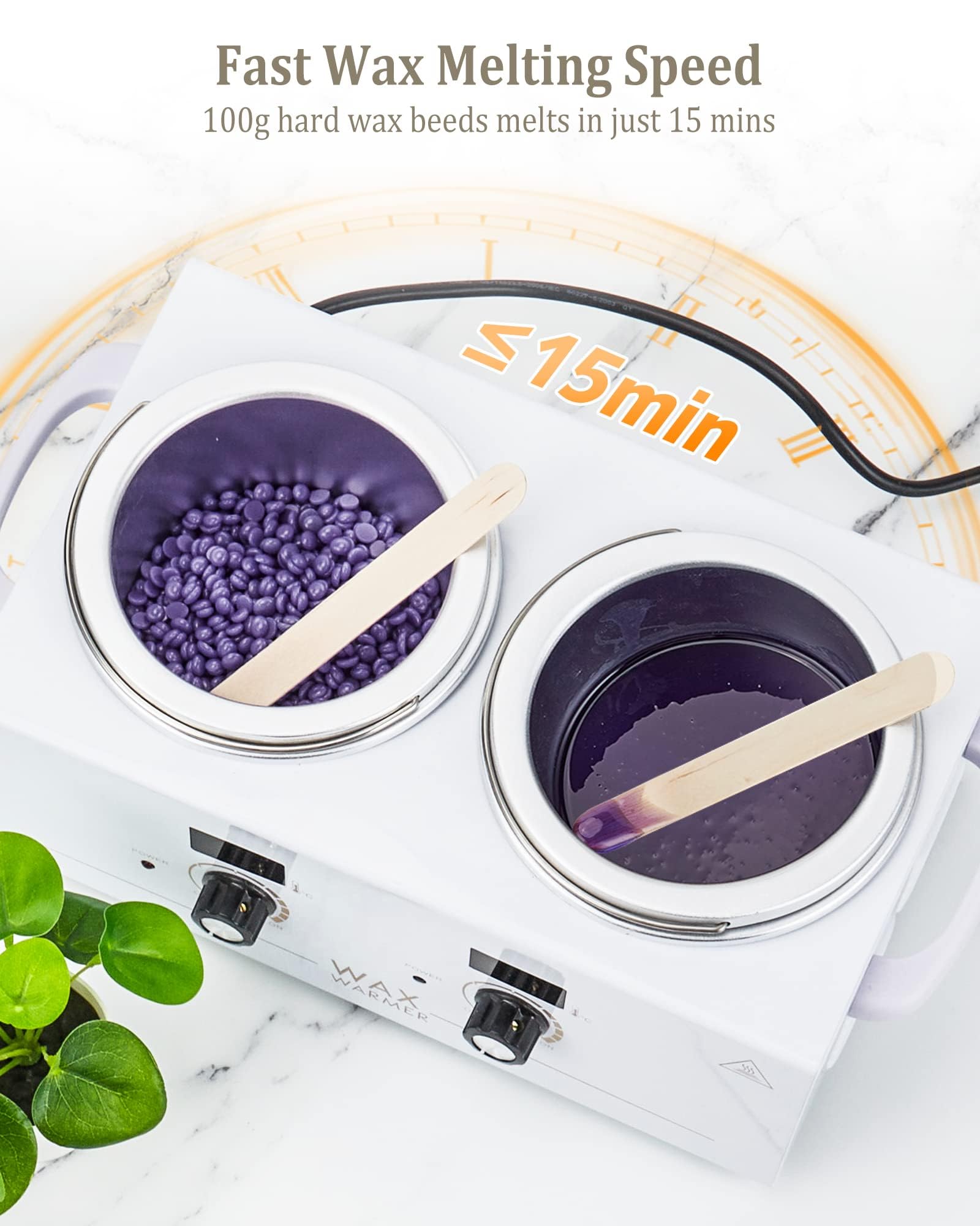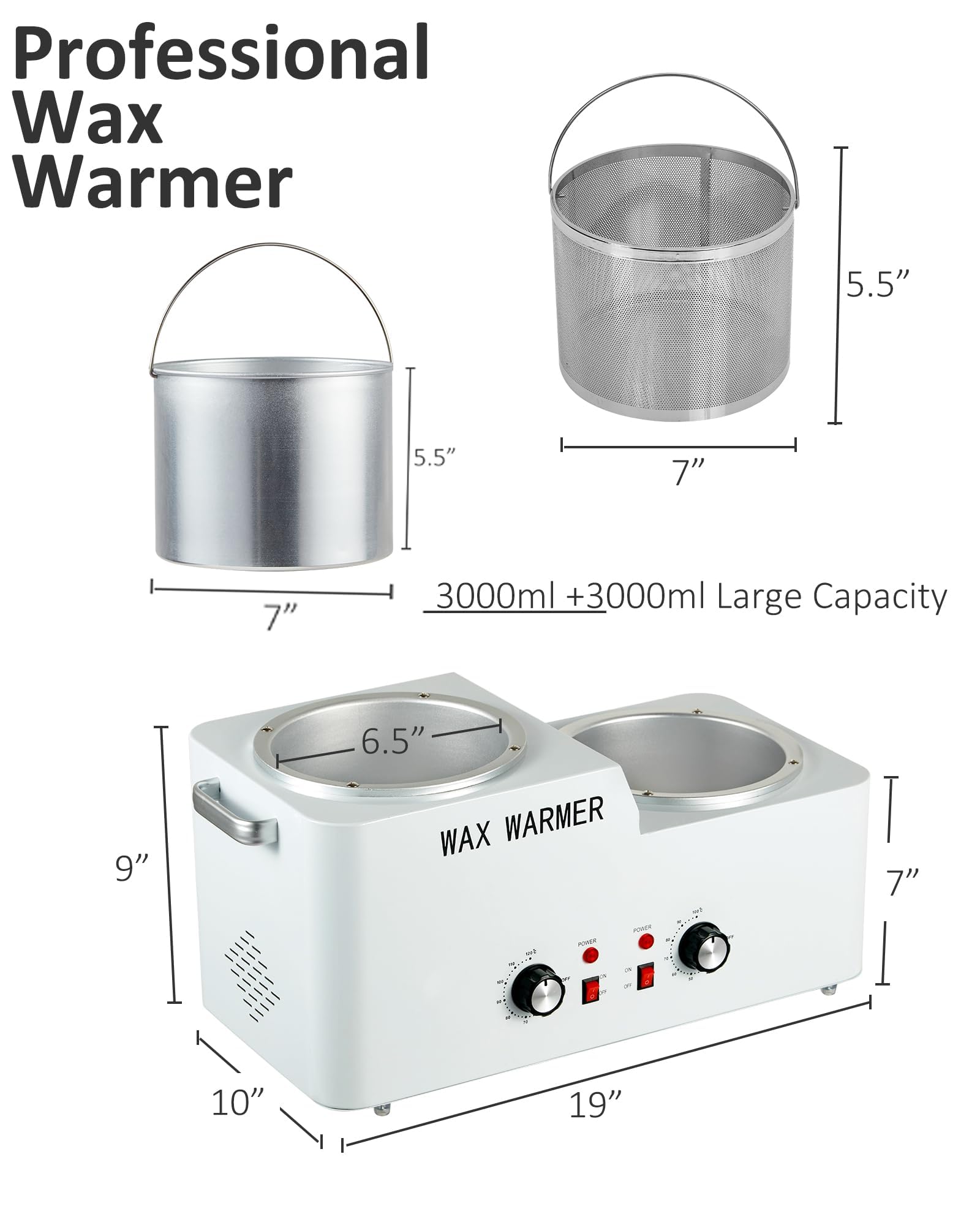 Garvee 6L Large Wax Warmer for Hair Removal, 15 Mins Quick Wax Melting Professional Wax Pot Warmer Kit for All Hair Types Including Facial, Legs, Bikini,White Wax Warmer Double