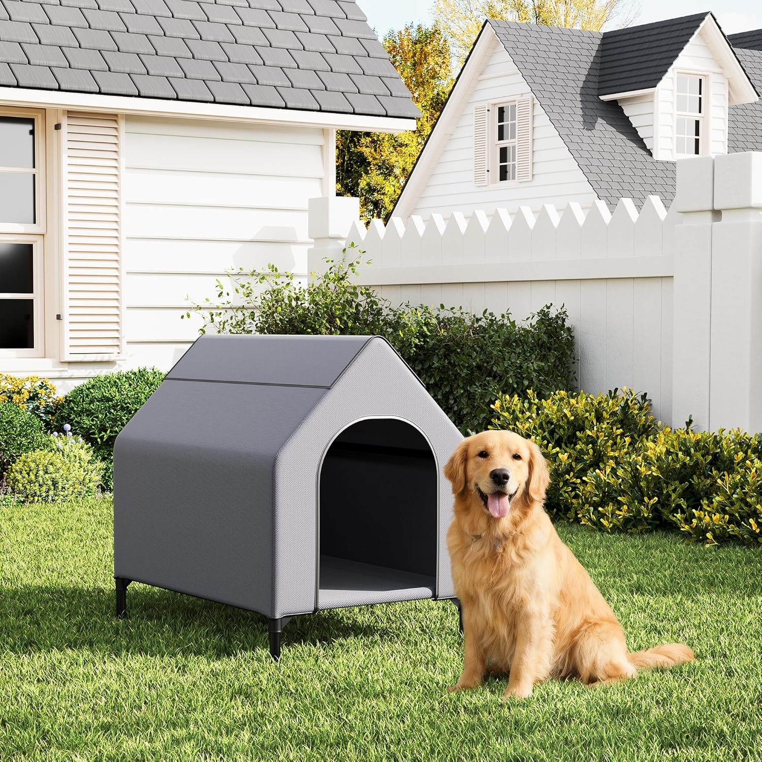 Garvee Dog House Outdoor Weatherproof 600D Oxford Canopy, 2 Top Windows, Breathable Mesh Fabric Bed, Dog Tents Shelter Kennel, Medium Dog House for Outdoor Indoor, Gray