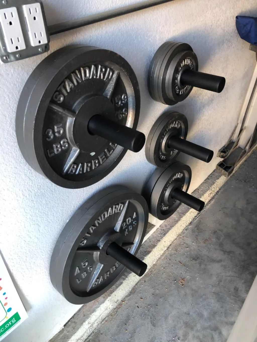 - 🧹 Space-Saving and Organized Gym Storage: Compact wall-mounted design declutters your workout area, neatly holding 1" and 2" weight plates, bumper plates, and more—maximizing floor space.