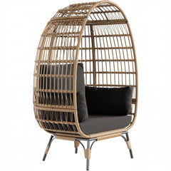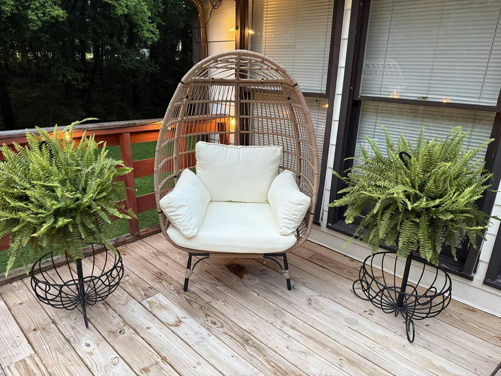 Garvee Wicker Egg Chair, Egg Basket Lounge Chair with Thick Cushion, Egg Shaped Seat with Metal Stand for Indoor Outdoor Patio Porch Backyard, Off-white