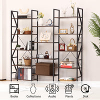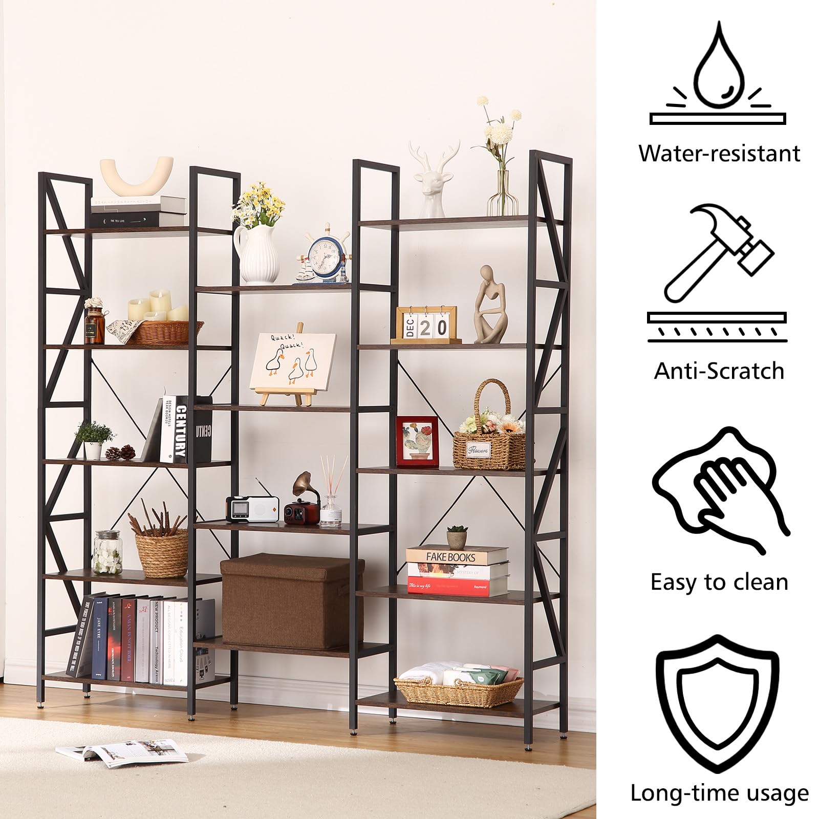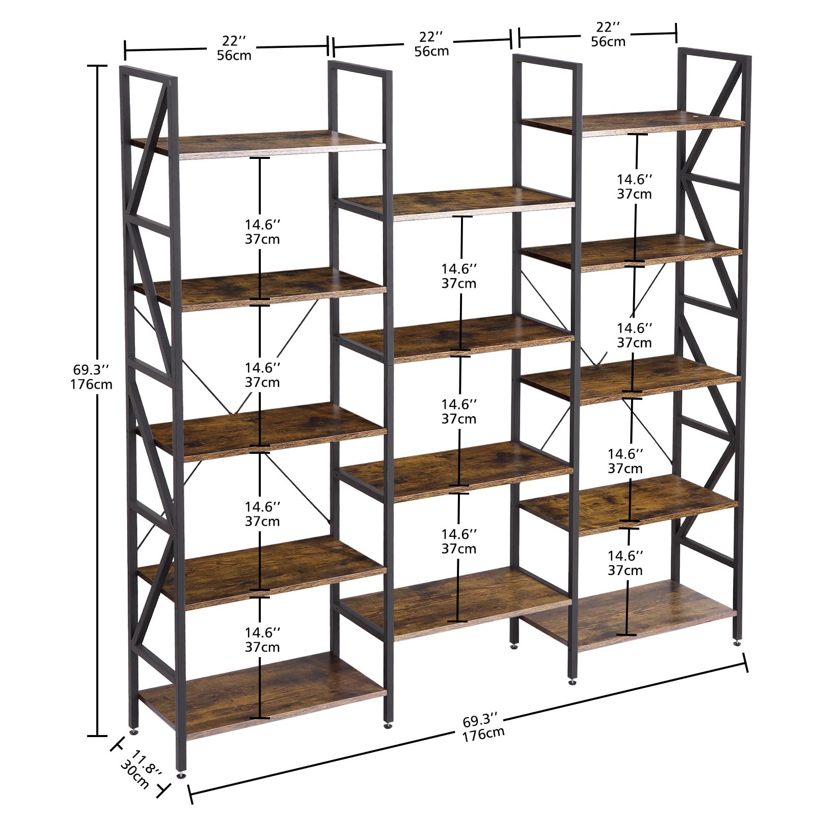Transform your living space with our versatile and stylish triple wide 5 tier book shelf. Designed for modern homes and offices, it combines industrial charm with practical storage solutions.