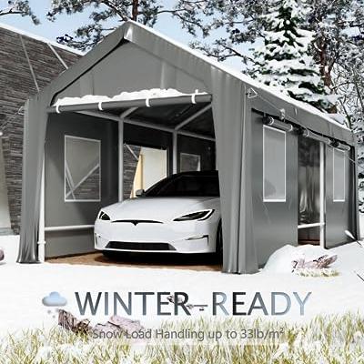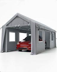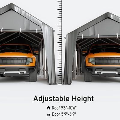Garvee 10'x20' Heavy Duty Windproof Carport Canopy, Reinforced Anti-High Wind Portable Garage for Pickup, Boat, and Equipment, Height Adjustable, Silver Grey