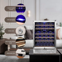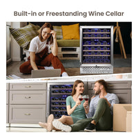 Garvee Wine Cooler Refrigerator 51 Bottles Compressor Dual Zone Built-in or Freestanding Fridge with Seamless Stainless Steel & Triple-Layer Tempered Reversible Glass Door and Temperature Memory Function
