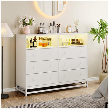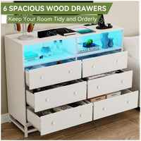 Garvee Wide Dresser for Bedroom with Charging Station, 6 Drawer Dresser with LED Lights, Modern Large Capacity Storage Cabinet, Closet,White