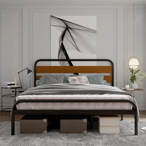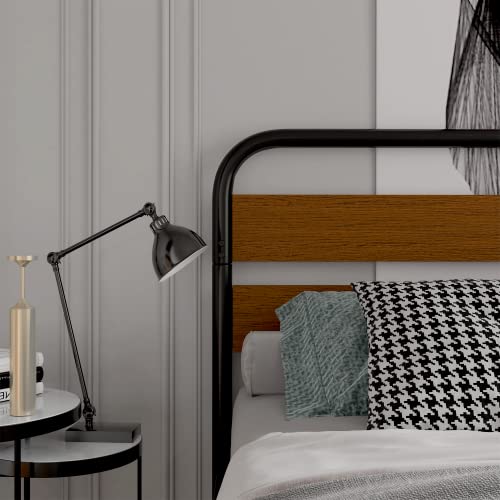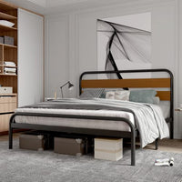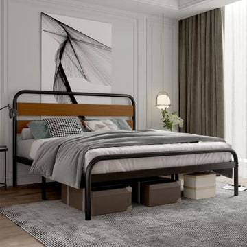 With its industrial-inspired design, heavy-duty metal slat support, and easy assembly process, this bed frame combines aesthetics with functionality. The wood headboard adds a touch of warmth to your bedroom decor.