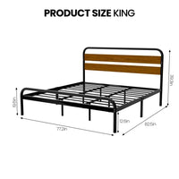 Transform your bedroom with our sturdy and stylish king size platform bed frame. Combining rustic wood and metal elements, this bed frame offers both aesthetic appeal and practical functionality for your sleeping space.