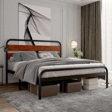 With its rustic wood grain headboard, durable metal frame, and practical storage space, the GARVEE Queen Platform Bed Frame combines style, strength, and functionality for your perfect bedroom setup.