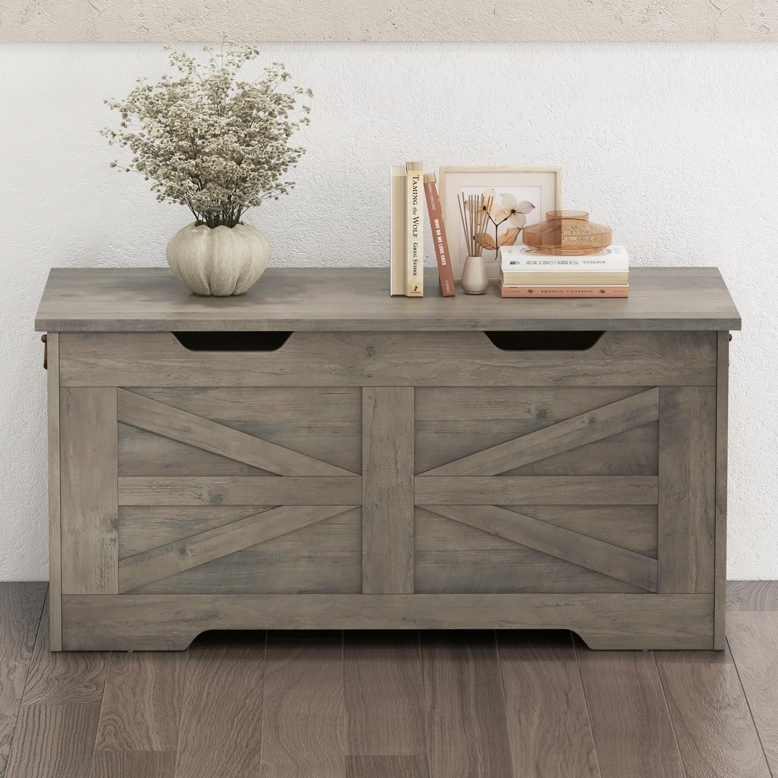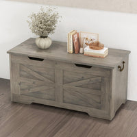 Garvee Wooden Storage Chest with Safety Hinge, Flip Top, 39.4" Bench, MDF Board, Farmhouse Style, Entryway, Bedroom, Gray