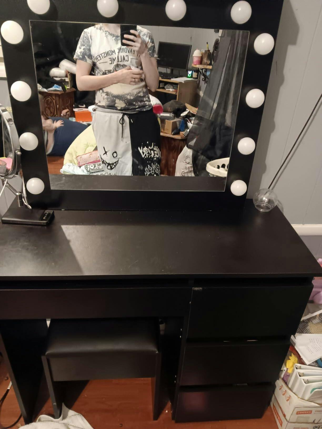 - [Adjustable LED Lighting]: Achieve professional-quality makeup application with the GARVEE Makeup Vanity Desk, featuring adjustable brightness and three distinct light modes. This setup ensures you look your best in any lighting condition.