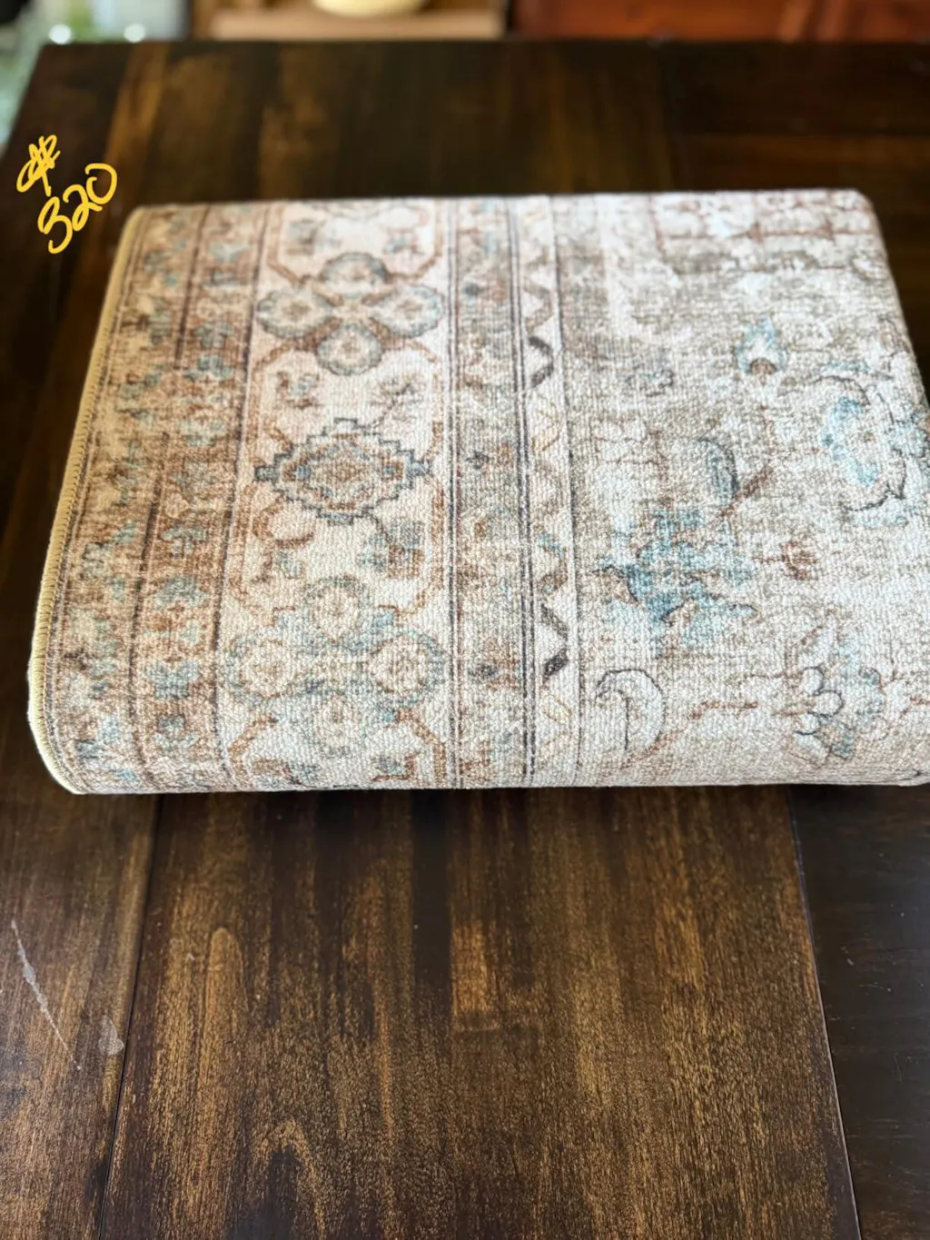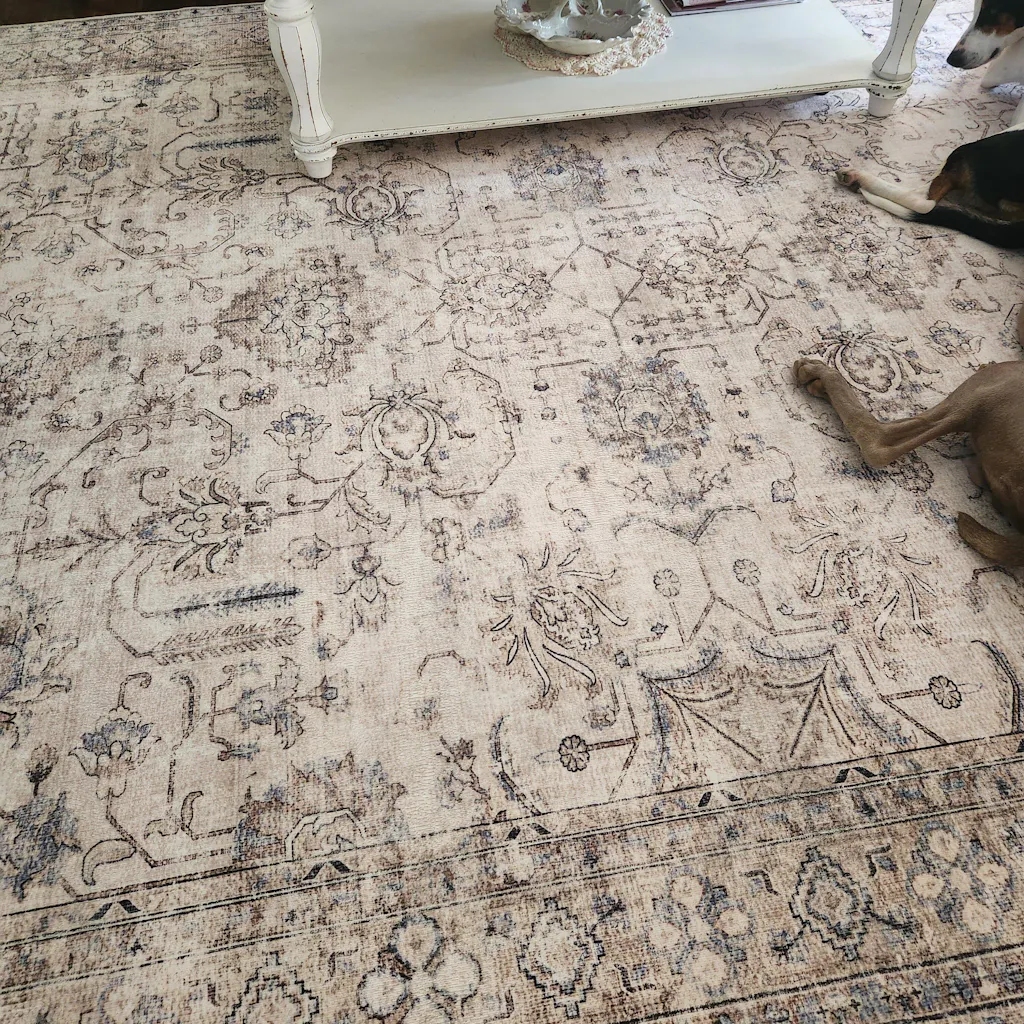 The distressed and vintage rug is made of premium quality terry pile, it feels soft and silky to the touch