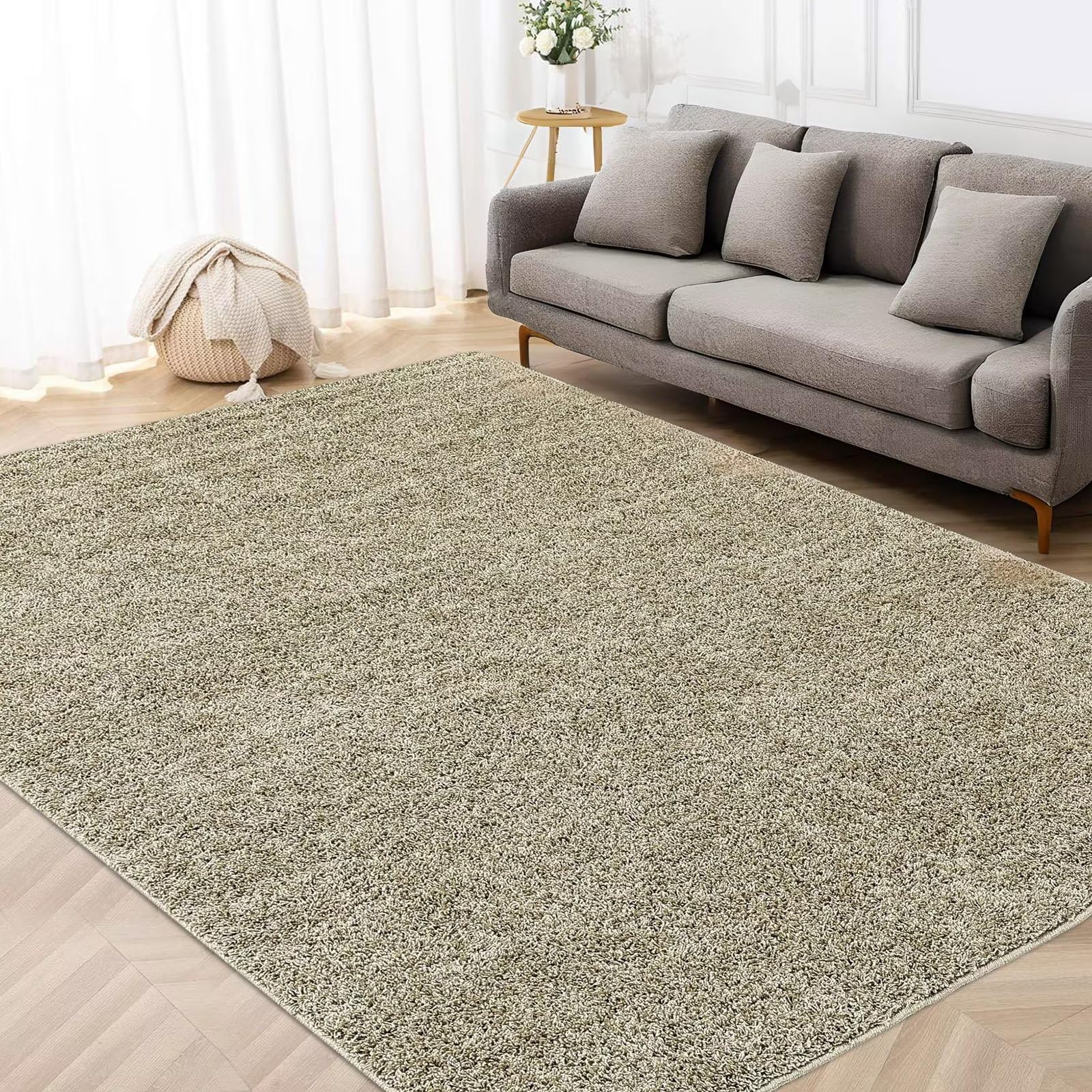 Garvee Area Rug 4x6 Shag Rug Plush Shaggy Bedroom Carpet Soft Thick Living Room Rug Indoor Modern Solid Throw Rug Non Slip Non Shedding Decor Mat Dining Room Kitchen Nursery Stain Resistant Rug,Natural