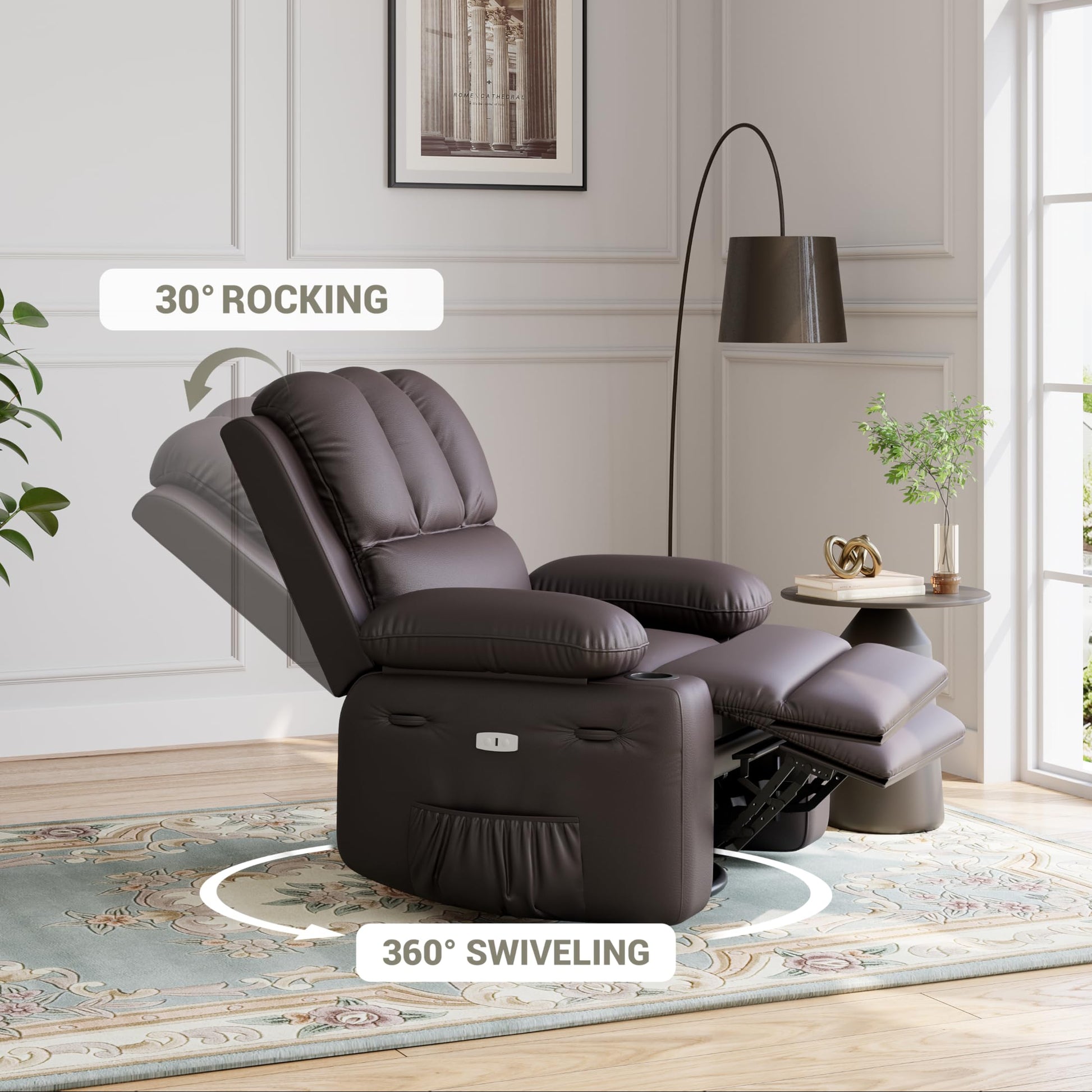 Garvee 22'' Width Power Recliner Chair, Electric Rocker Swivel USB Charger Lazy Boy for Adults, with Vibrating Massage and Heating, 1.5X Sponge Filling for Living Room, Bedroom and Nursery