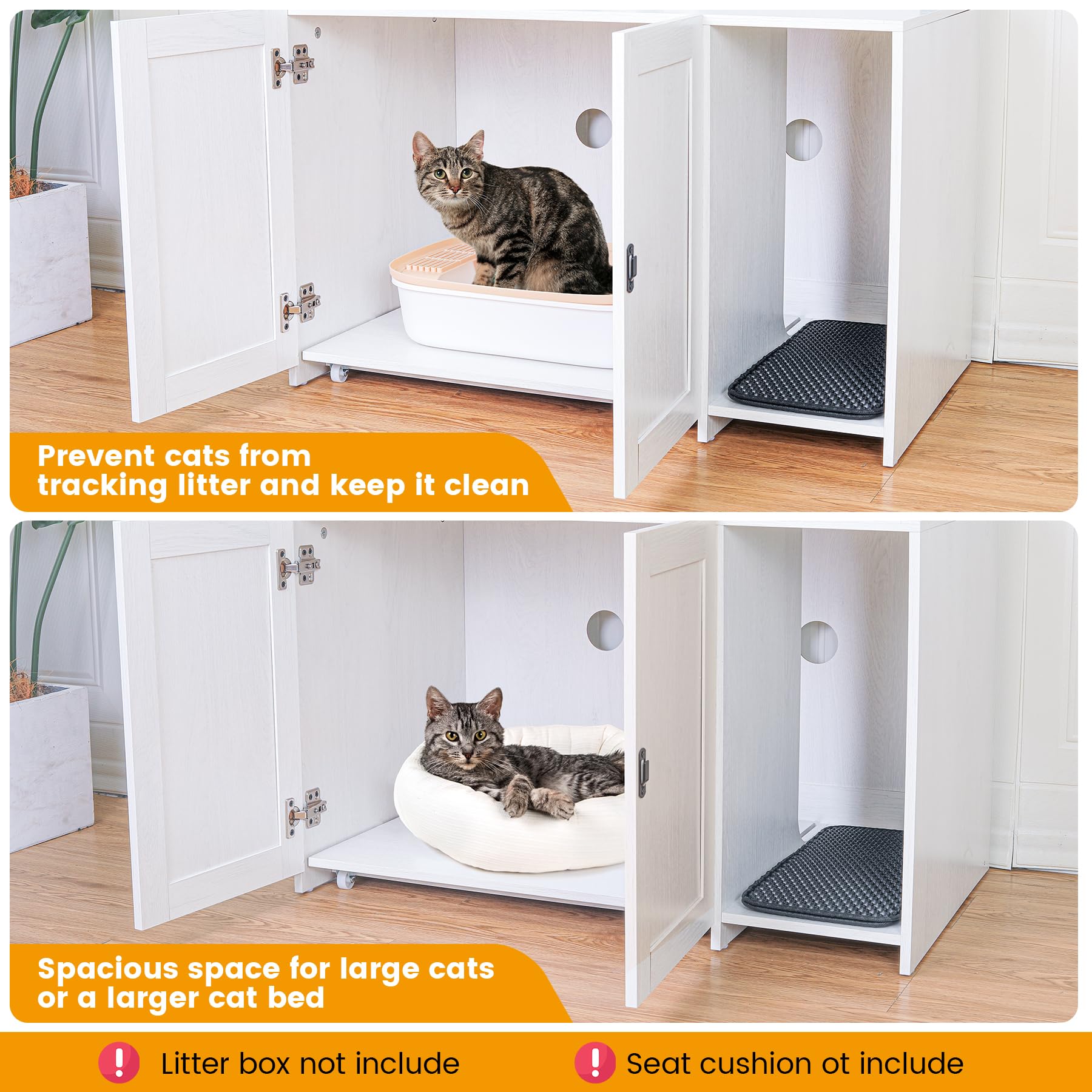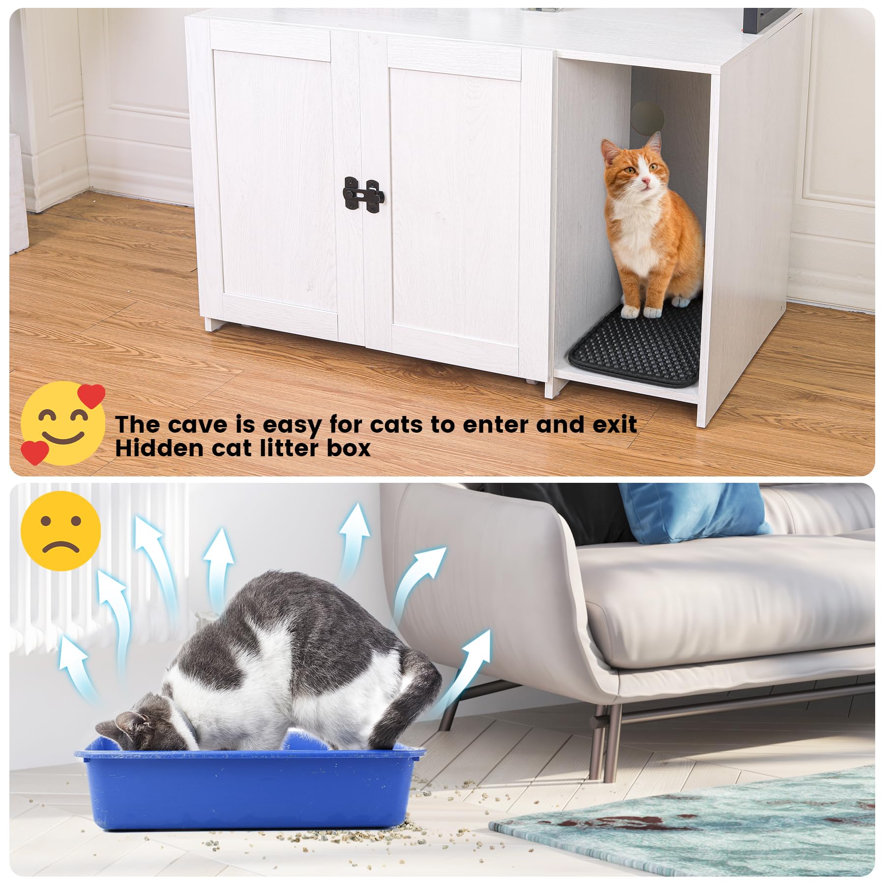 With its spacious interior suitable for larger cats, multiple ventilation points, and durable construction, this cat litter box enclosure offers the perfect blend of functionality and style for your home.