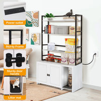 Garvee Cat Litter Box Enclosure, Hidden Cat Litter Box Furniture, Large Double Door Cat House with 3 Shelves and Charging Station, Push-Pull Mobile Chassis