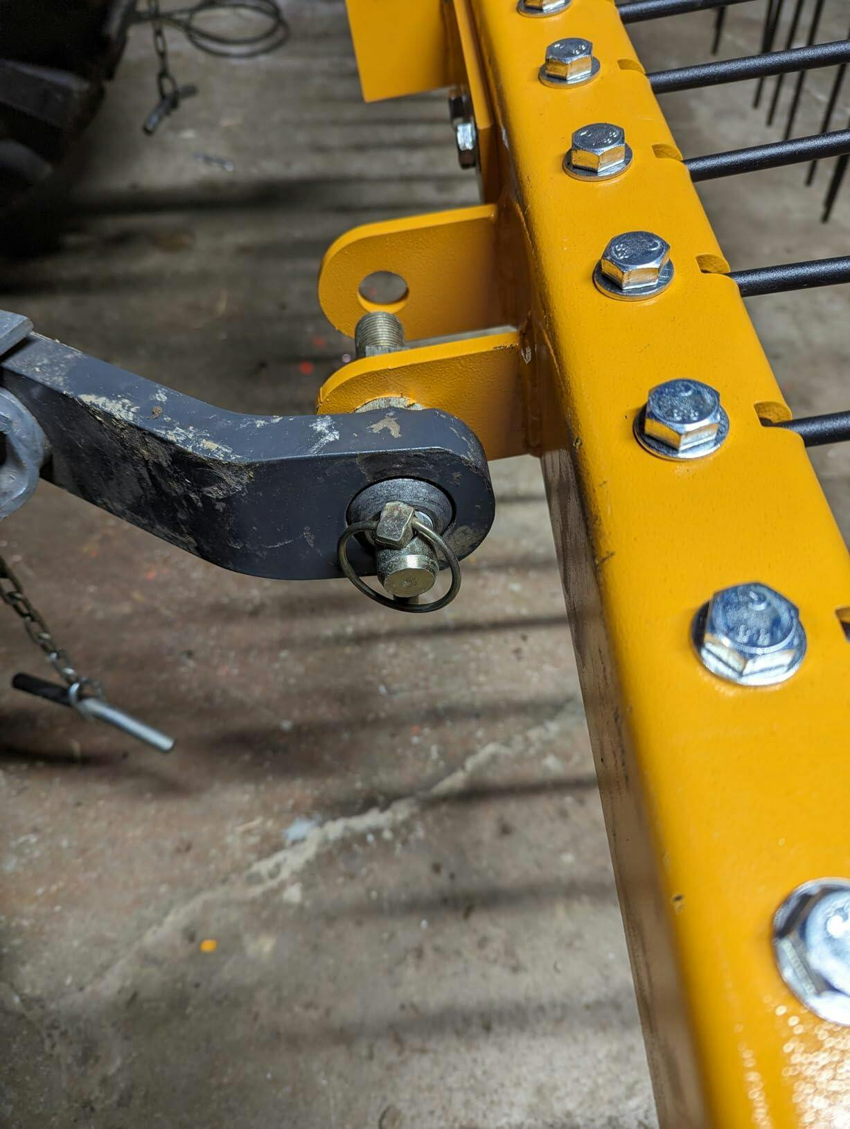 Garvee 60 Inch Pine Straw Needle Rake,26 Coil Spring Tines Pine Needles Rakes, Durable Powder Coated Steel Landscape Rake Attaches to Cat 0 Cat 1, 3 Point Hitch Receiver Attachment - Black+Yellow