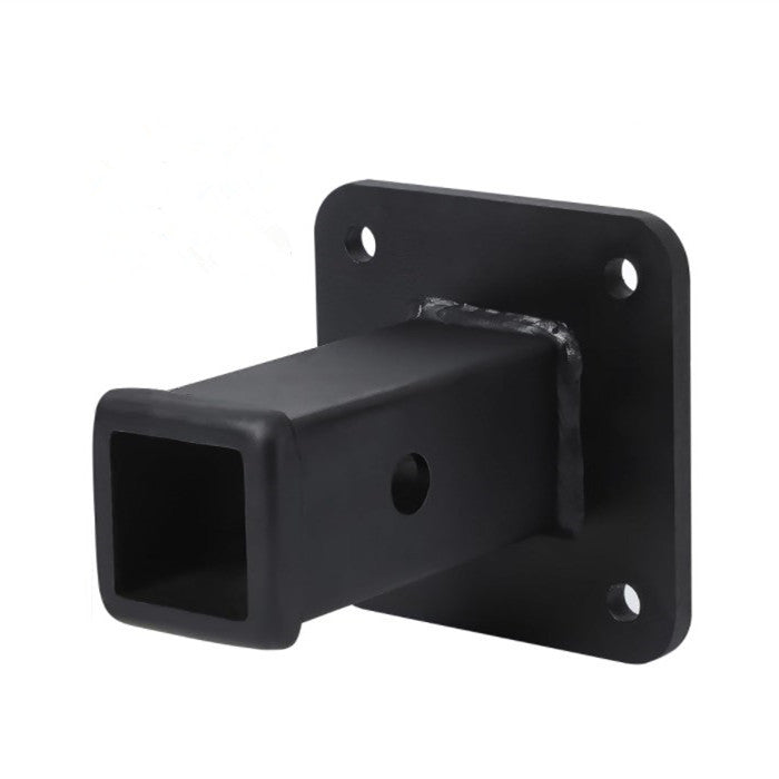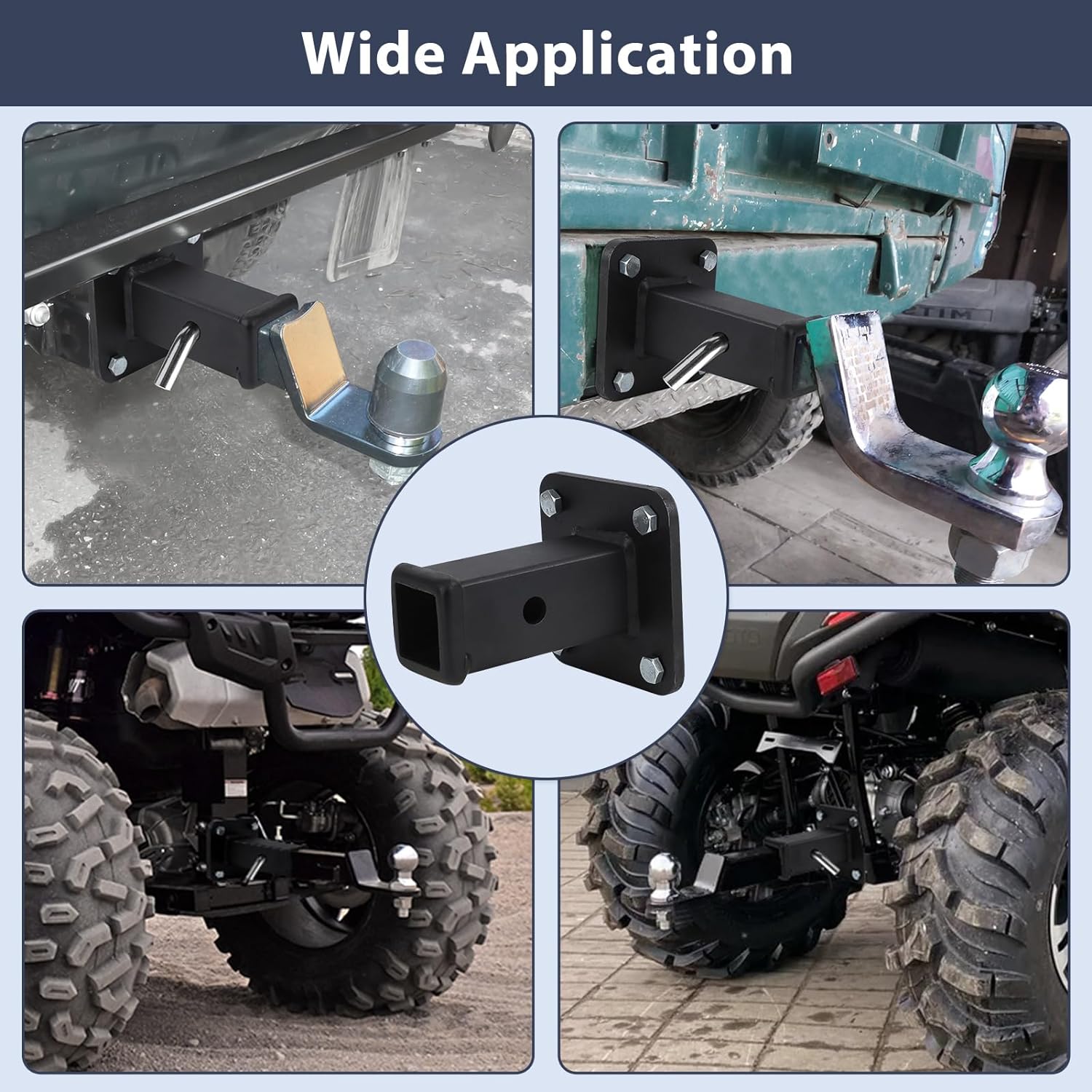 Features a 6.75-inch long, 2-inch hitch extender welded to a 5/6-inch steel mounting plate for enhanced safety and durability.