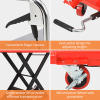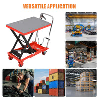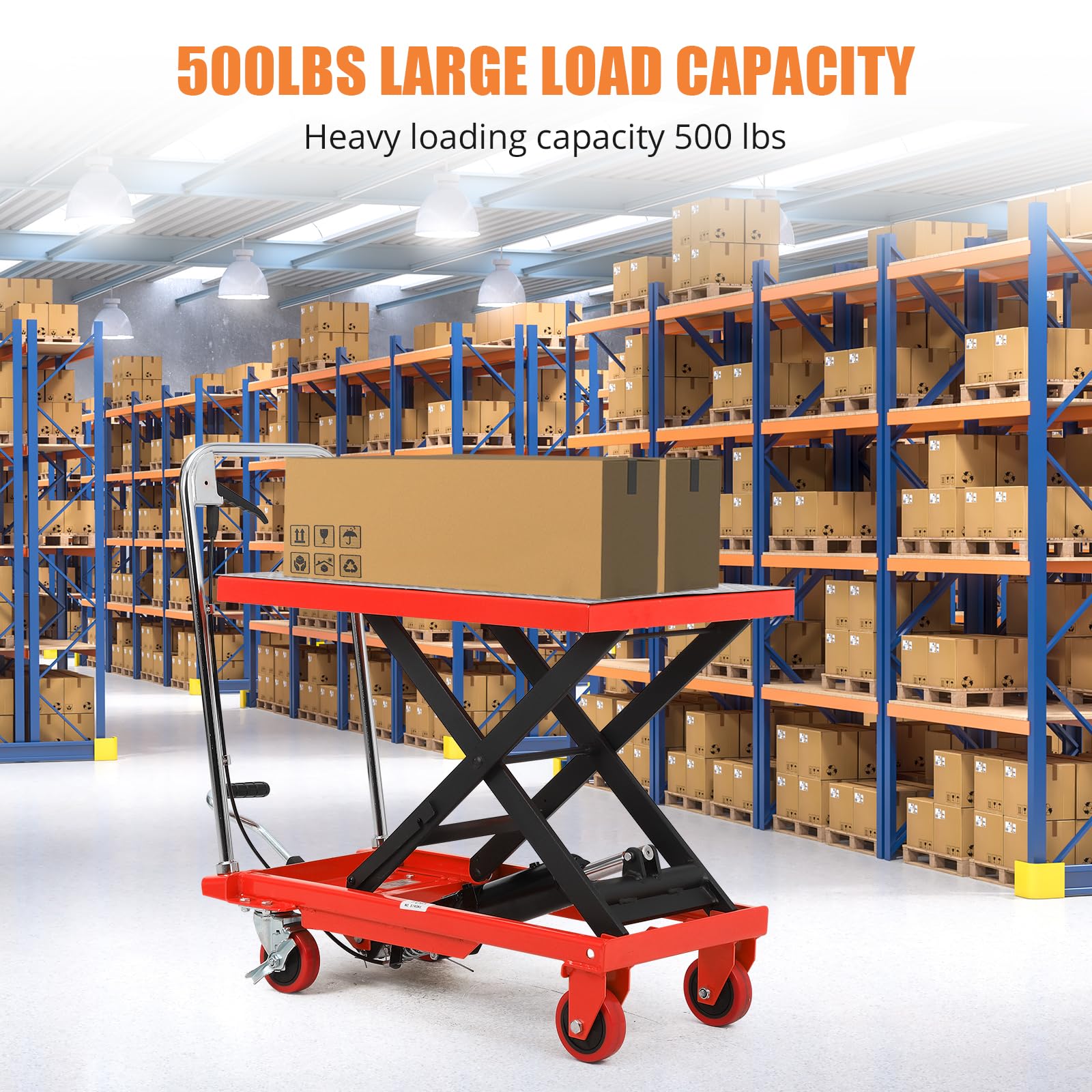 Garvee Hydraulic Lift Table Cart 500lbs, Lift Table Capacity 28.5 Inch Lifting Height, Manual Single Scissor with 4 Wheels and Non-Slip Pad Thickness 3mm for Material Handling and Transportation