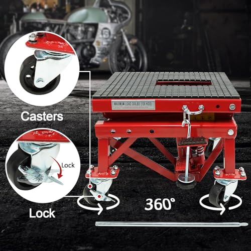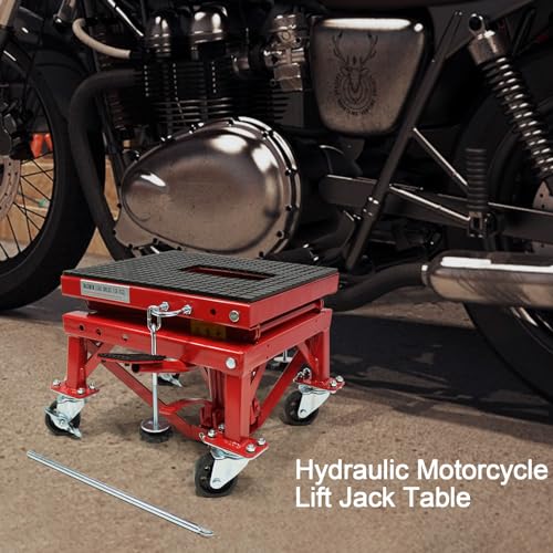 Garvee 300 LBS Hydraulic Motorcycle Lift Jack, 300 LBS ATV Scissor Lift Jack for Motorcycles - With Wheels