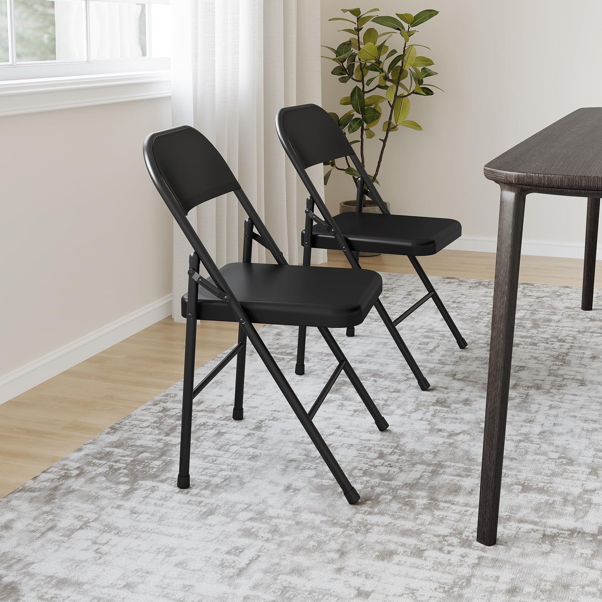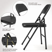 Garvee Folding Chairs Set of 4, Foldable Chairs with Metal Frame Hold Up to 350 Pounds, Portable Black Folding Chairs Suitable for Dining Room, Living Room, Office, Camping
