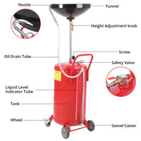 Garvee 20 Gallon Adjustable Oil Drain Tank, Pneumatic Waste Oil Drainer with 17.8" Funnel, 41.93-66.34" Height Range, Level Display & Brake Wheels for Auto Shops & Home Use