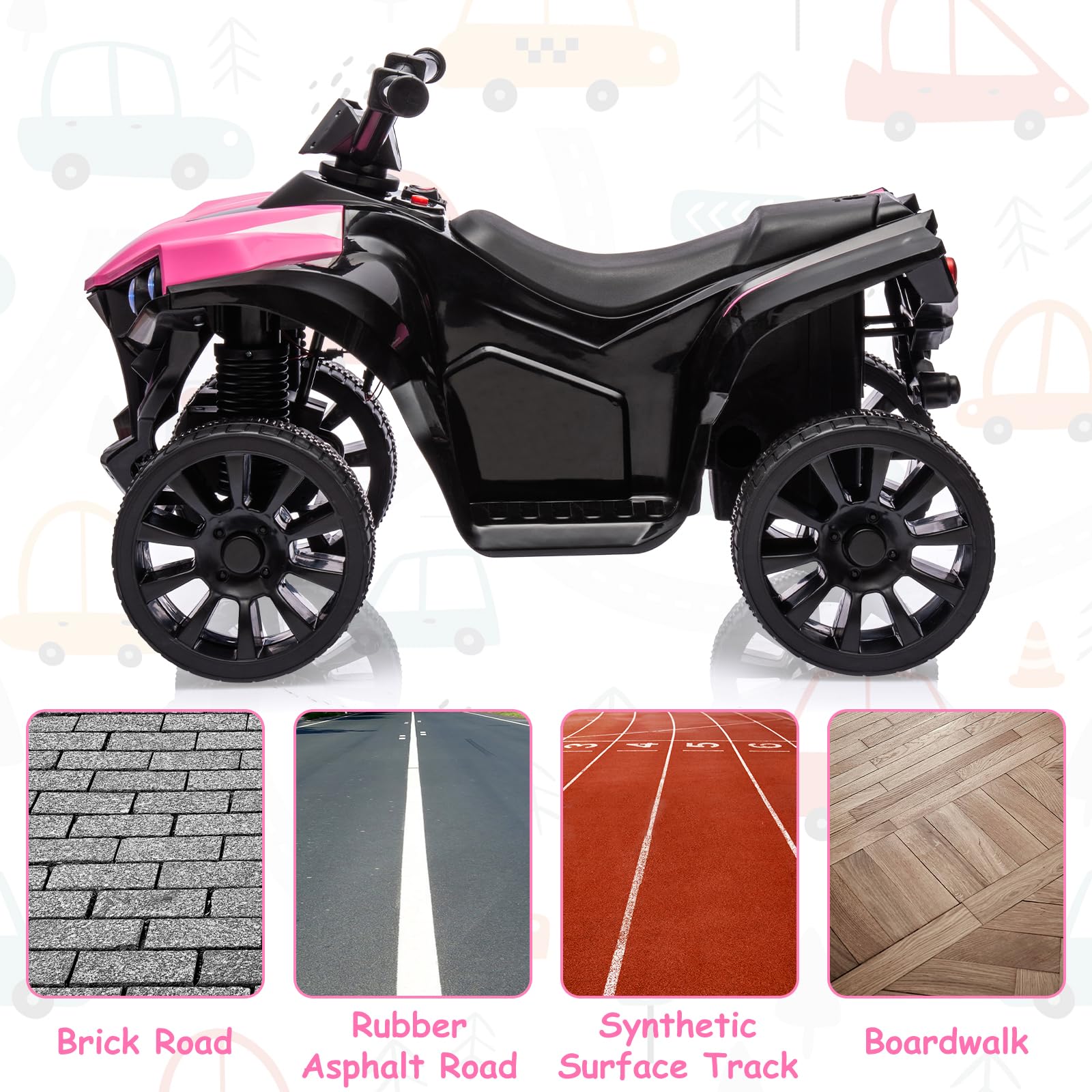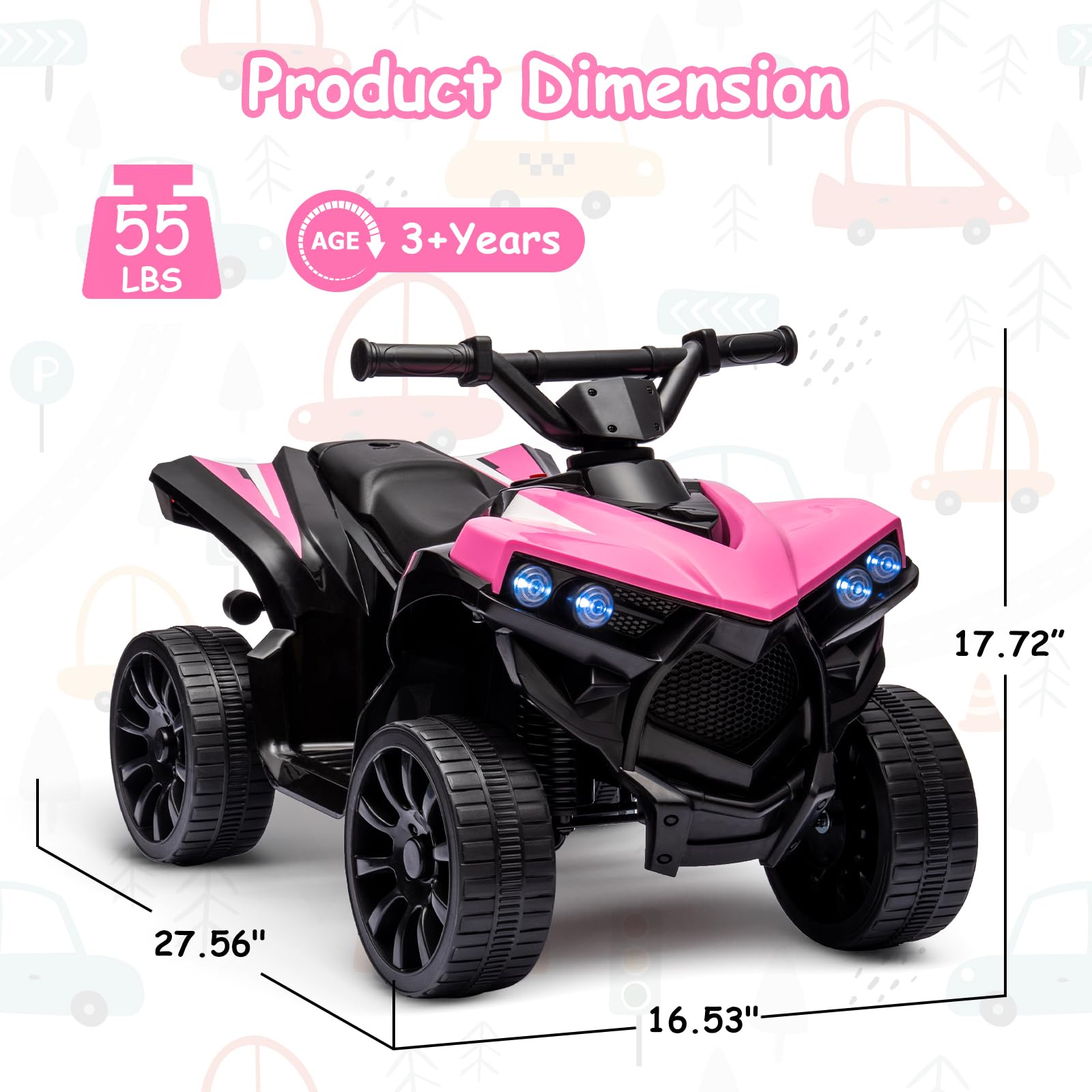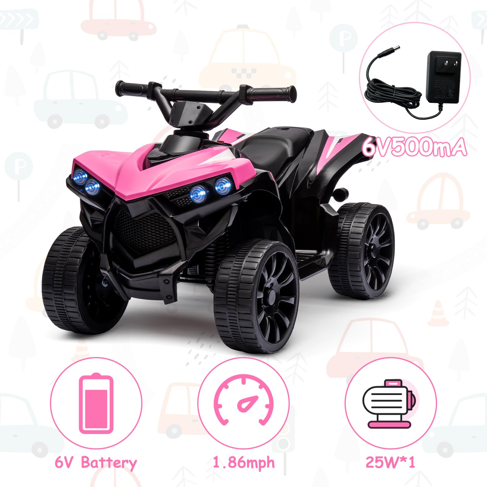 Garvee Ride - P Series: 6V Quad ATV for Kids Toddler 3+ years, Max 55lb Capacity ,With LED, Music, Foot Pedal, Wear-Resistant Wheels, 1.9 MPH - Pink