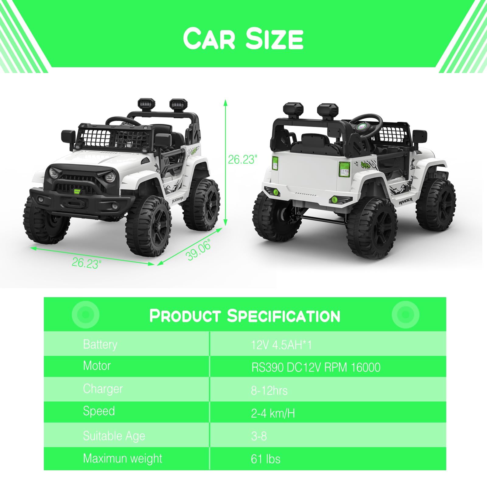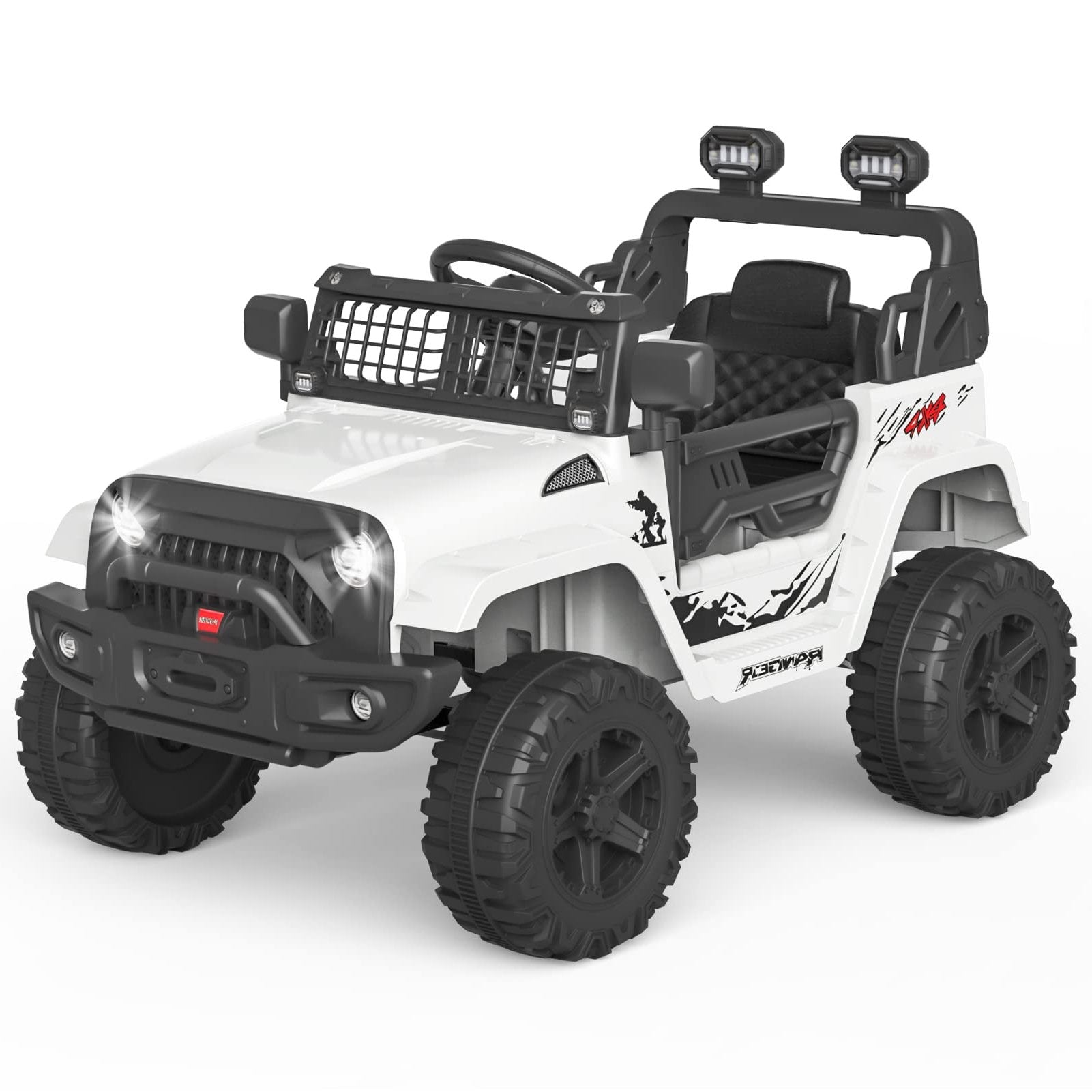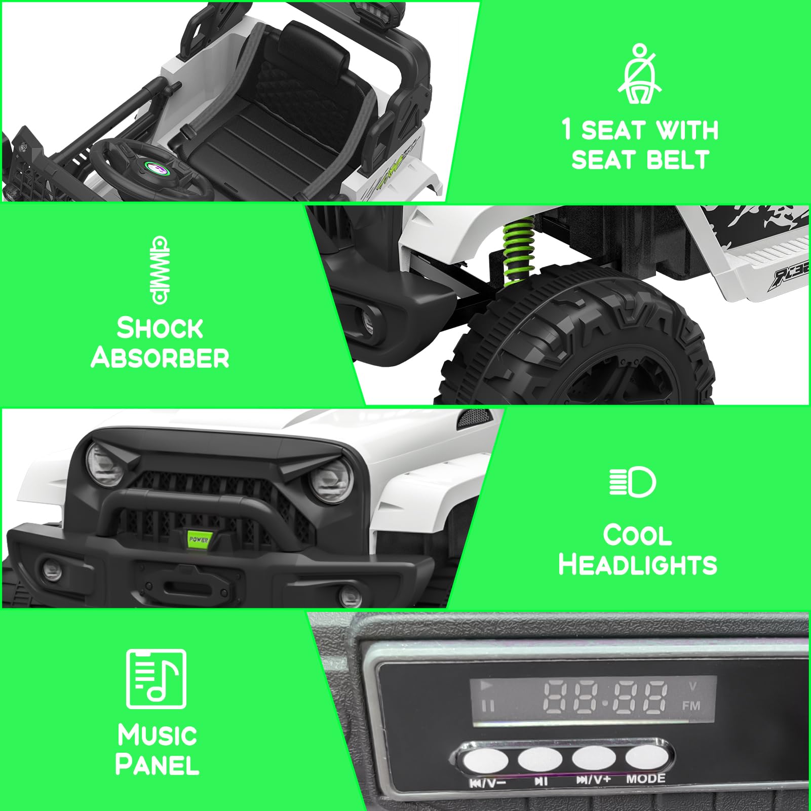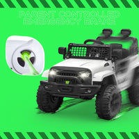 Garvee Ride P Series 12V Kids Electric Vehicles with Remote Control Spring Suspension, LED Lights, Bluetooth, 2 Speeds - Whtie