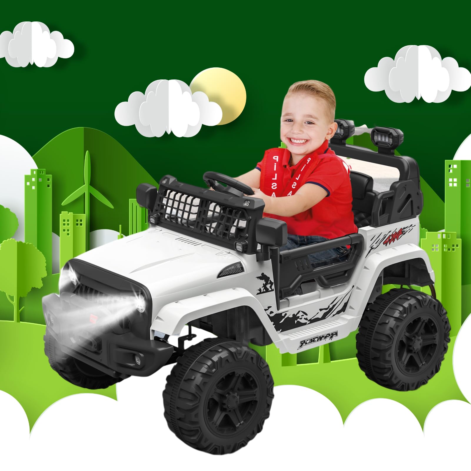 - Real Off-Road Adventure: 12V high-torque motor and spring suspension. All-terrain tires and reinforced grille tackle grass, gravel, and 15° slopes. LED headlights light the way at dusk.