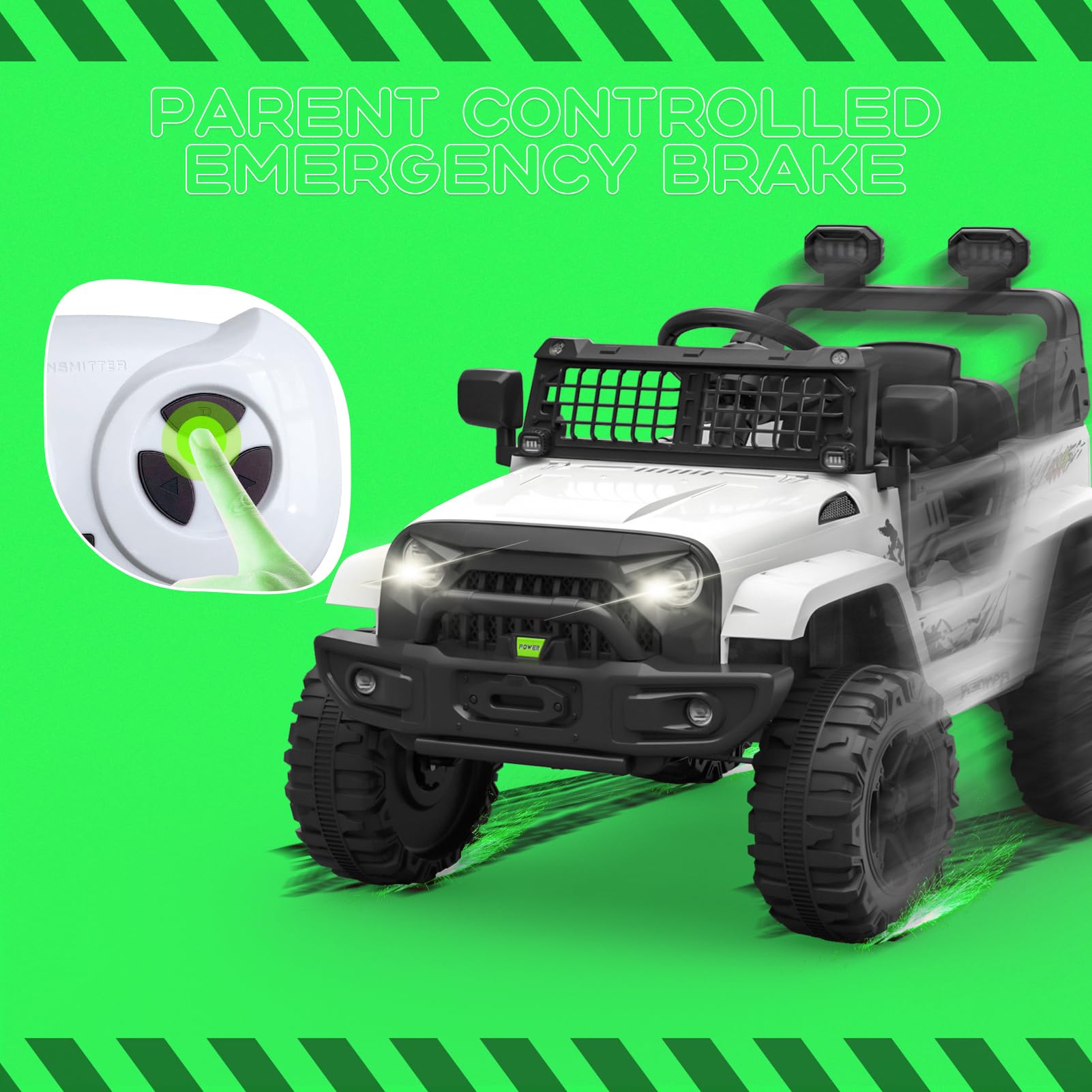 - Parental Control & Safety: 2.4GHz remote with emergency brake. ASTM-certified build with 3-point belt, lockable doors, and impact-resistant frame. CPSIA materials for safe fun ages 4–8.