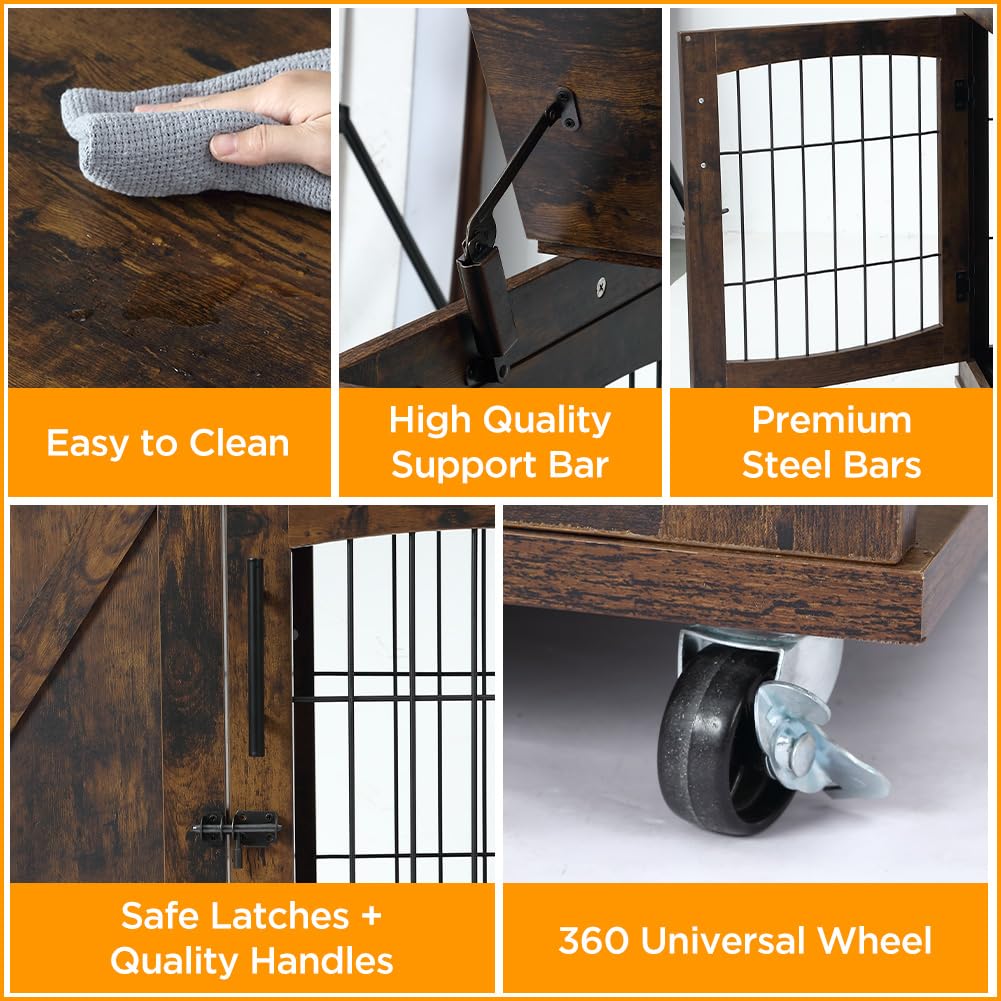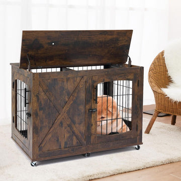 This 39" wooden dog kennel isn't just a pet crate - it's a multifunctional piece of furniture. With its ability to support up to 130 lbs on top, it serves as an elegant end table, adding both style and functionality to your living space.