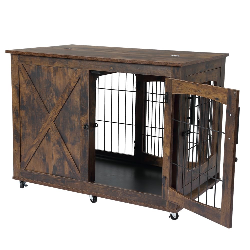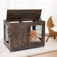 Transform your living space with our innovative 39" wooden dog crate end table. Featuring 4 doors including a sliding barn door, this versatile piece combines a cozy pet house with a stylish furniture item, perfect for the discerning pet owner.