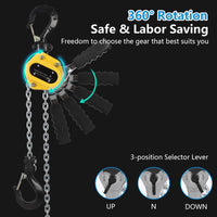 Garvee 0.25T 10Ft Lever Chain Hoist w/Portable Hooks, 360° Hook