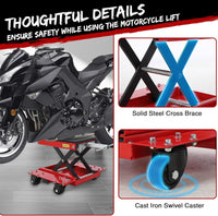 Garvee Motorcycle Lift Jack, 1200 LBS Transmission Motorcycle Stand Scissor Jack with Wide Deck & Dolly, Thickened Rubber Pad Dirt Bike Stand Lift for ATV, Bike, Street Bikes, Cruiser Bikes