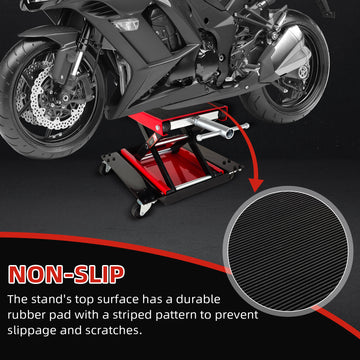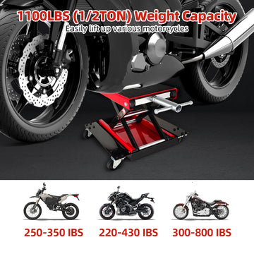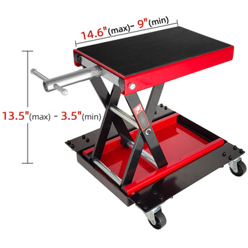 Garvee 1100 LBS Motorcycle Dirt Bike Scooter Crank Stand With Casters, Wide Deck Motorcycle Center Scissor Lift Jack Repair Hoist Stand Bikes ATVs