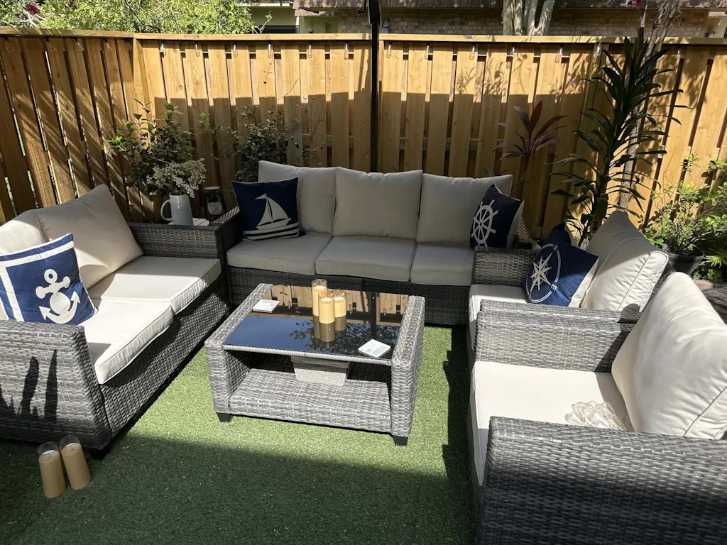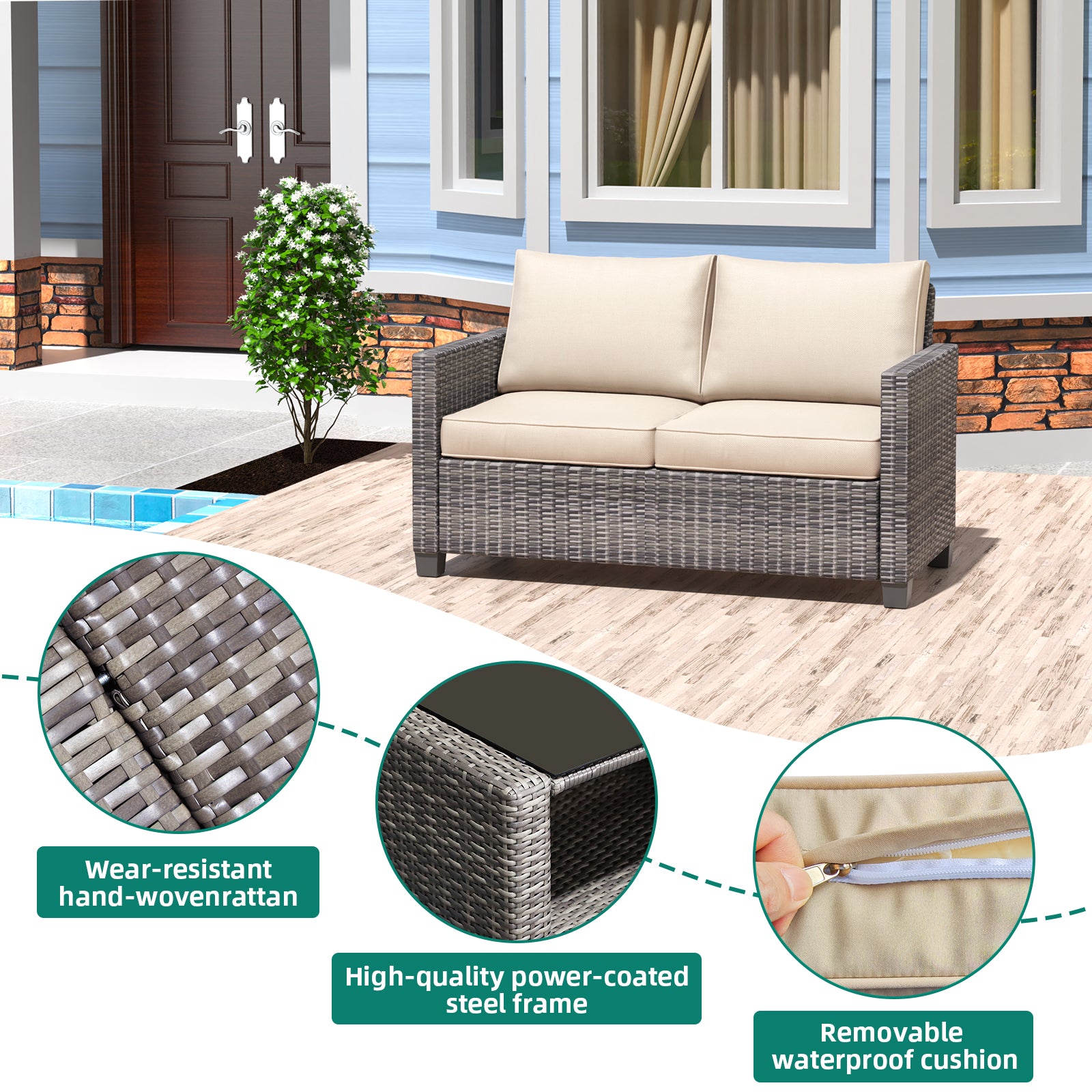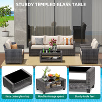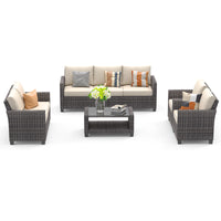 Garvee 5pc Outdoor Rattan Patio Furniture Set - Sectional 3-Seat Sofa, 2-Seat Sofa, 2 Single Sofas & Table - All-Weather Conversation Set for Balcony & Backyard