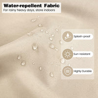 The outdoor chairs are comfortable, but the assembly is a bit of a hassle. They are rain-resistant. However, since there’s nothing to hold the seat and back cushions in place, they slide around a lot. I had to buy adhesive hook-and-loop strips to keep them from moving. The glass on the coffee table could have been of better quality. Overall, I’m satisfied.