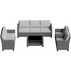- Versatility at Its Best: This patio furniture set includes a 3-seat sofa, 2-seat sofa, 2 single chairs, and a tempered glass table, comfortably seating up to 7 people—perfect for family gatherings, socializing, or relaxing in style.