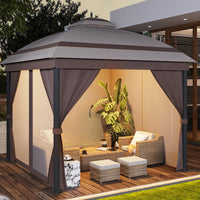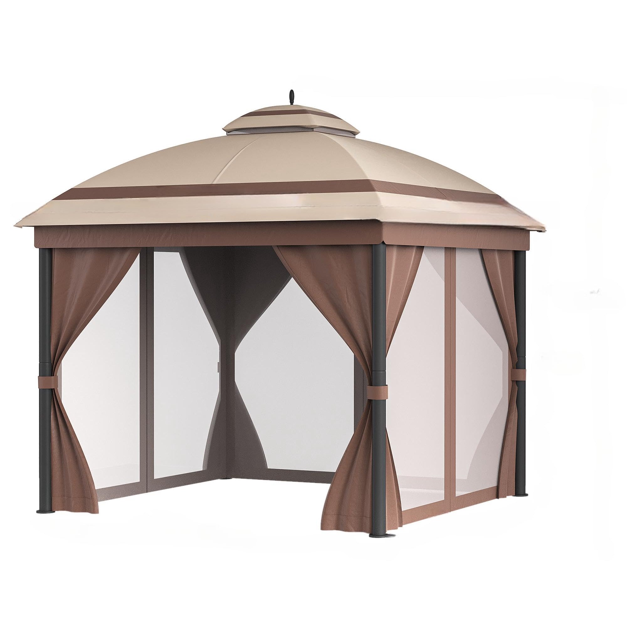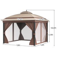 Garvee 12'x12' Outdoor Gazebo with Roof Reinforcing Bars Curtains and Netting for Backyard Garden Patio Poolside Deck,Brown