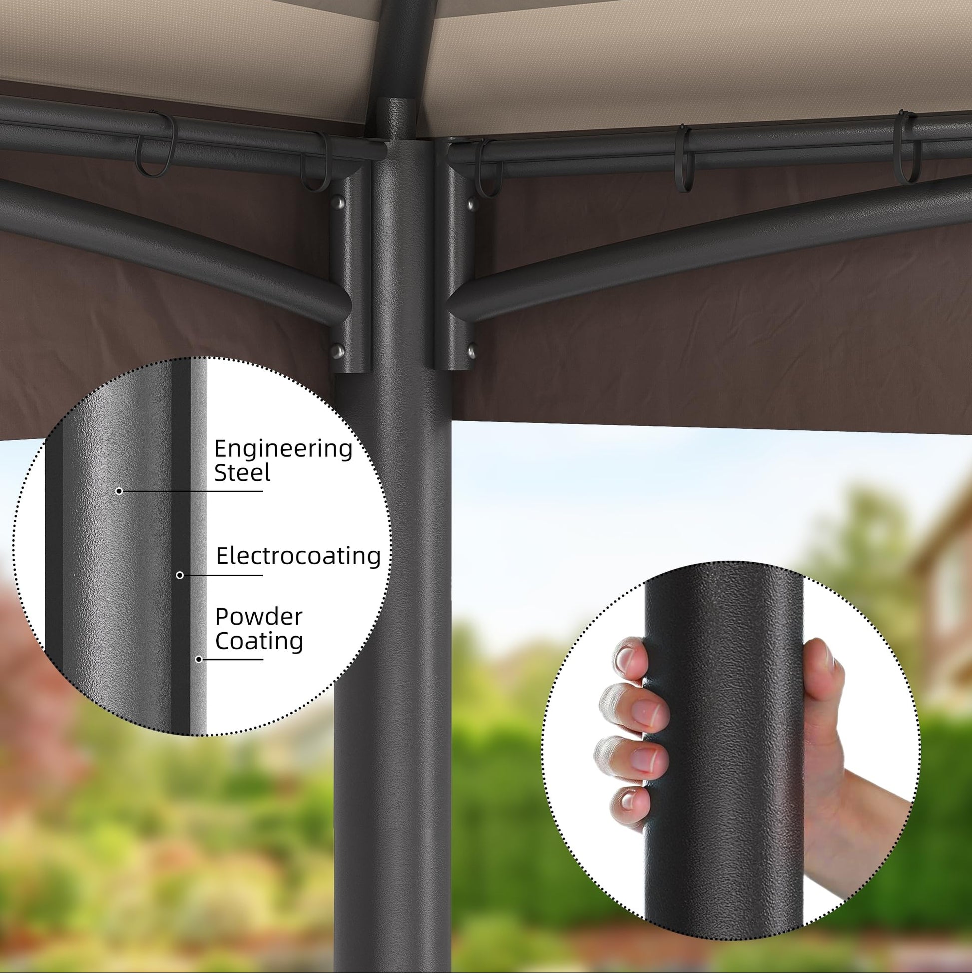 - [ Durable Structure ]: Our patio gazebo frame is constructed from cold-rolled steel, making it sturdy and resistant to rust; With a pole diameter of approximately Φ50 mm (2 inches) and a total weight of around 125 pounds, it provides a secure environment for your use.