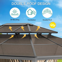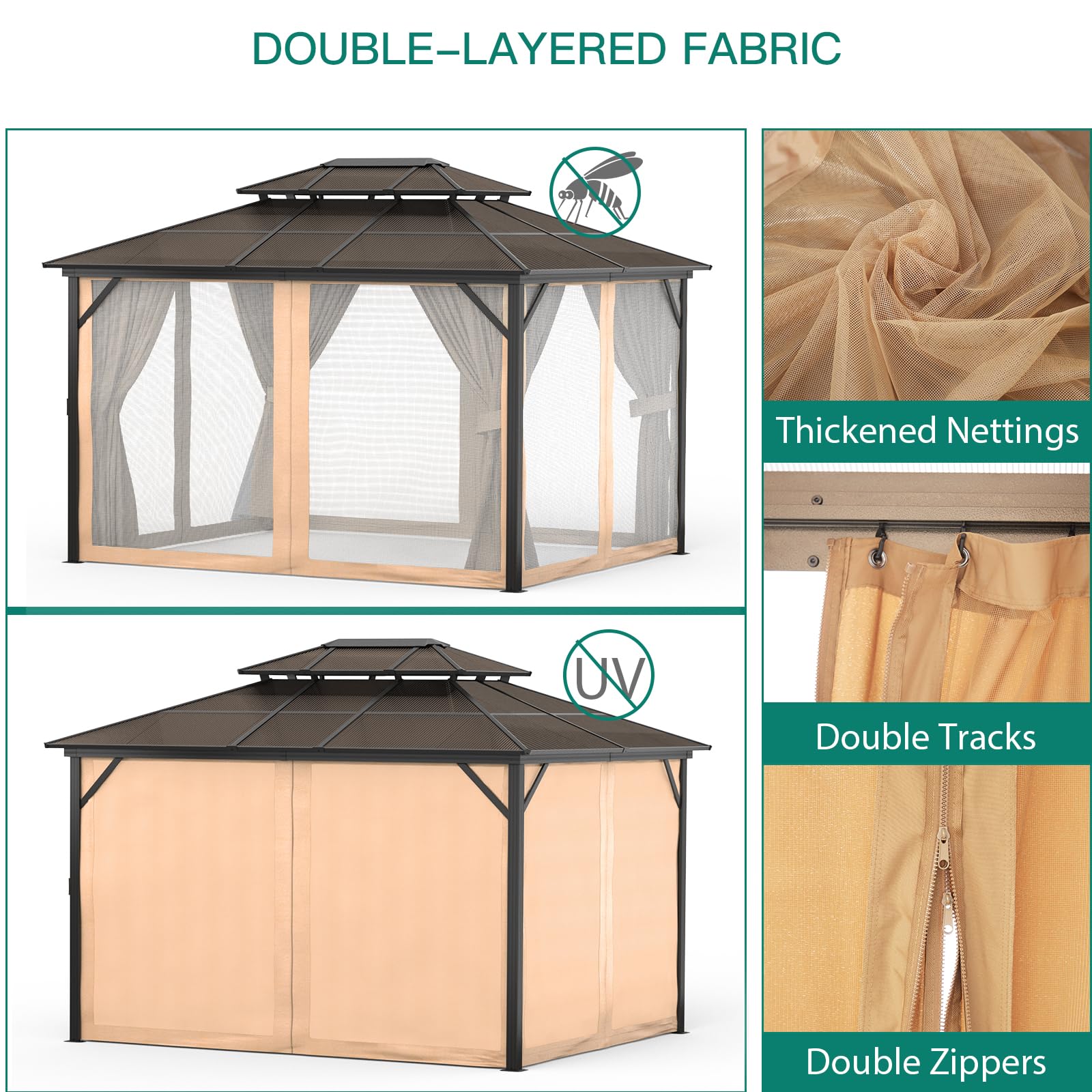 Garvee 10'x13' Hardtop Gazebo - Aluminum Frame Double Roof with Mesh Netting for Patio, Lawn & Deck (Fits 8 People, Khaki)