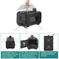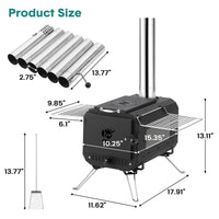 Garvee Outdoor Portable Wood Stove, Tent Stove,Wood Burning Stove for Camping,Cast Iron Wood Stove,Tent Heaters for Camping, Includes Chimney Pipes ans View Glass,Ice-fishing, Cookout, Hiking, Travel