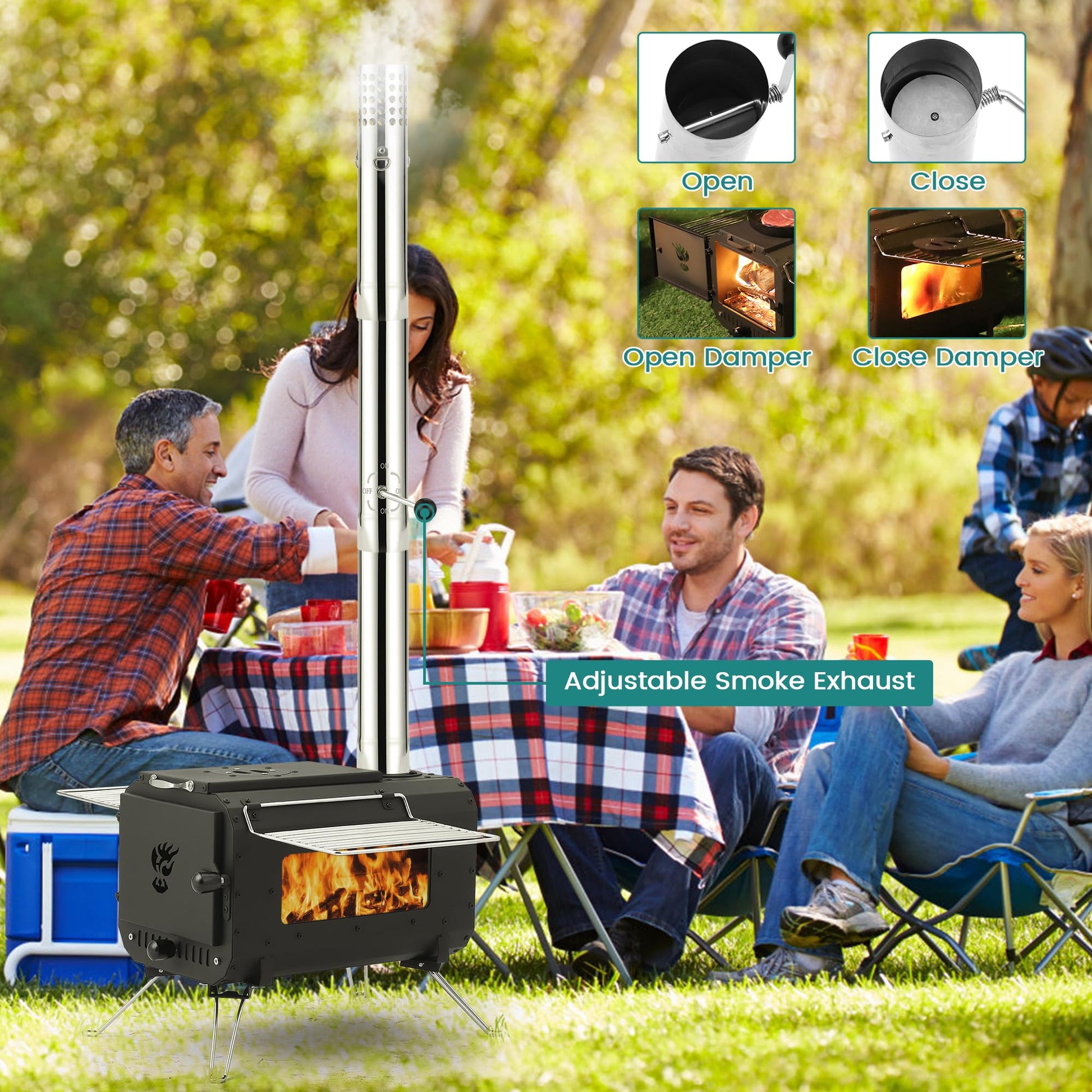 Whether you want to warm up, boil water, cook or barbecue, this tent stove can meet your outdoor needs