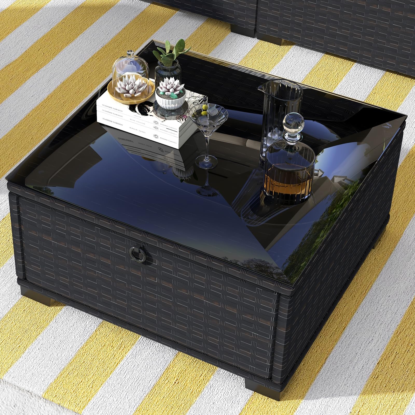 - 【Canopy&Storage Function】We have equipped a sunshade canopy, which is connected to the seat through sturdy metal brackets and can be adjusted to different angles to provide protection from the UV and rain. In addition, the table features a high-quality glass tabletop and storage function, making it the perfect choice for outdoor furniture.