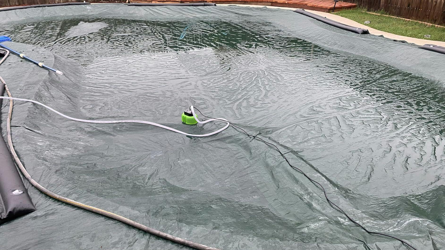 Swimming pool cover pumps help protect swimming pool covers from long-term accumulation of rain or melting snow.