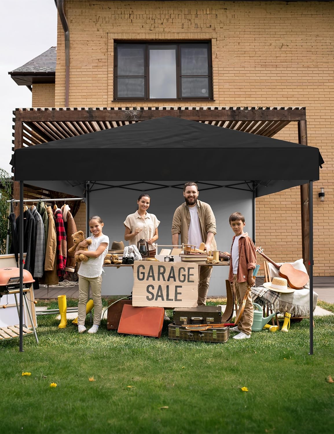 Garvee 10' X 10' Commercial Instant Pop-Up Canopy Tent, Heavy-Duty 210D Oxford Fabric with UV 50+ & Waterproof, 3 Removable Sidewalls for Farmers Markets, Outdoor Events, Sandbags Included, Black