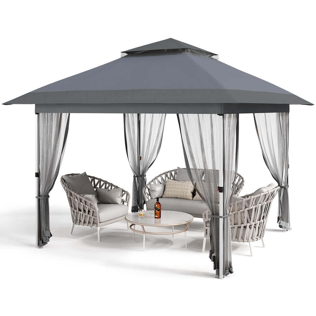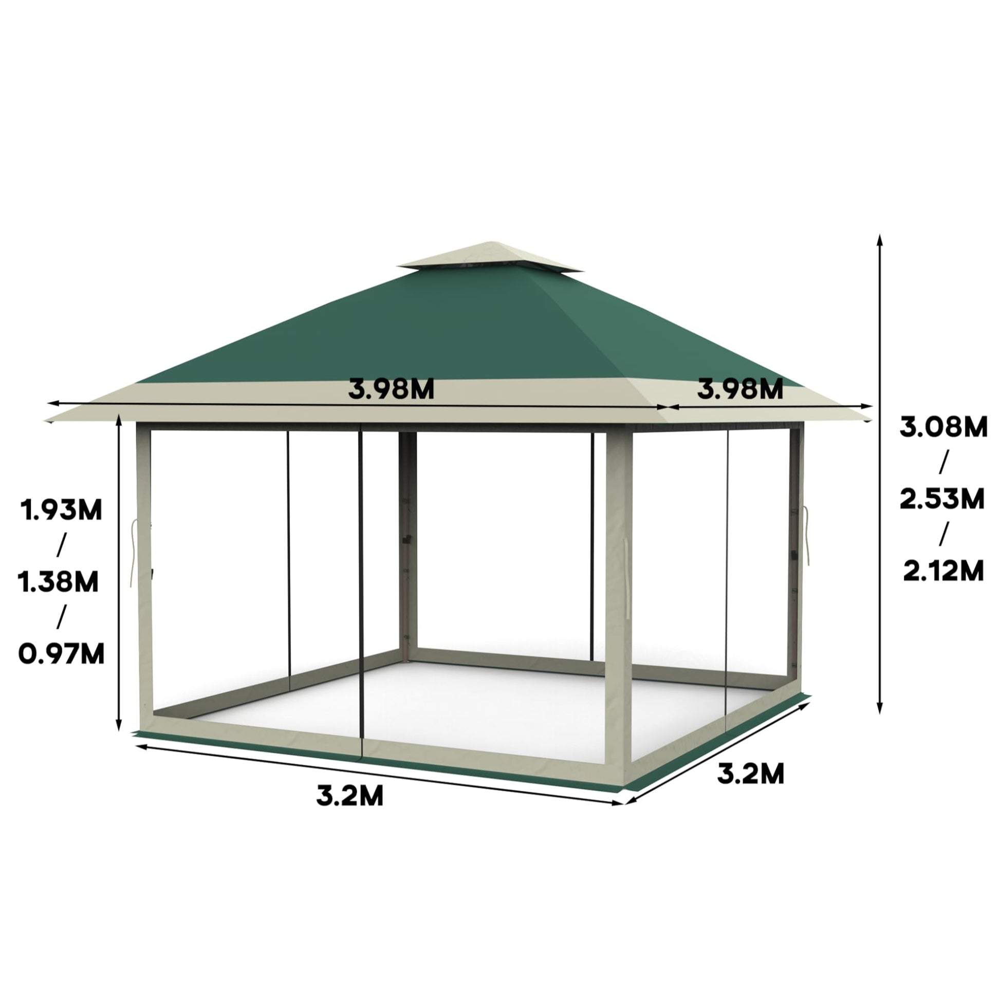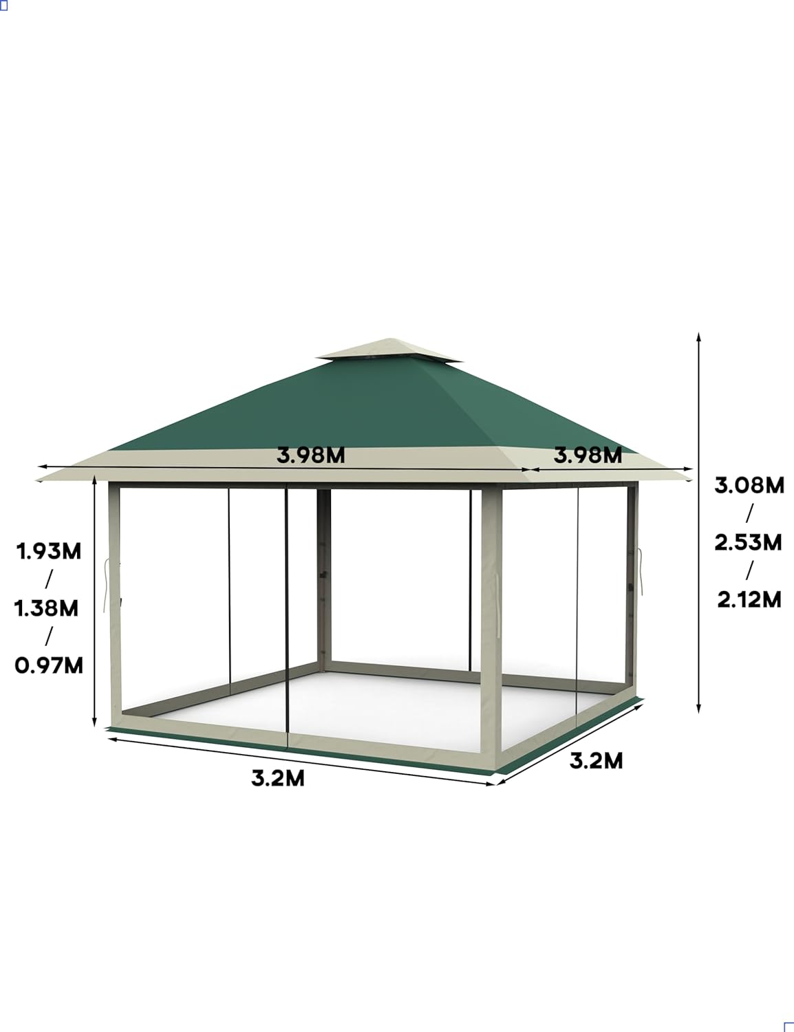 Garvee 13'x13' Pop Up Tent Outdoor Canopy Shelter with Mosquito Netting 4 Stanbags Instant Gazebo Tent for Lawn, Garden, Backyard Deck (Olive Green + Taupe)