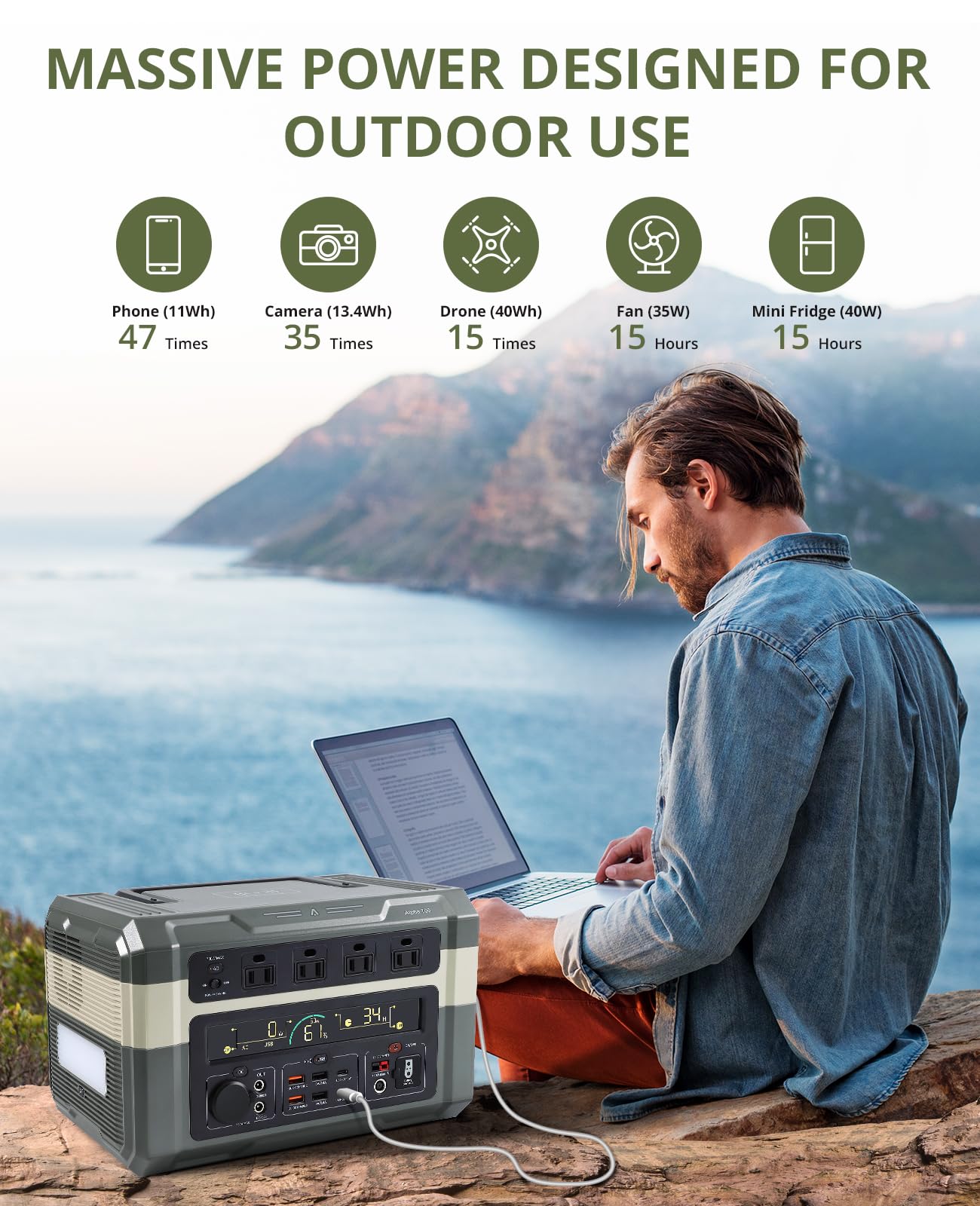 [ ULTRA-POWERFUL CAPACITY ] With a 614Wh capacity and 700 wattages, this portable power station is an ideal solution to power all your essential devices and appliances during a trip, such as an electric grill, coffee maker, refrigerator, and more.