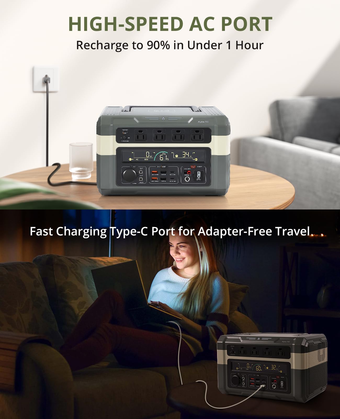 [ EXCEPTIONALLY FAST RECHARGE ] The portable power supply has fast charging technology that charges 90% in just 1 hour without taking 5-6 hours. With solar power, it charges to 80% in 3 hours.