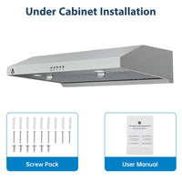 Transform your kitchen with our professional-grade under cabinet range hood. Featuring powerful 400 CFM suction and advanced filtration technology, it's the perfect combination of performance and style.