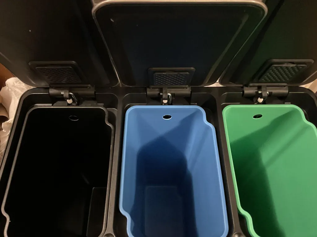 Three separate compartments for efficient waste sorting, making recycling easier and more organized than ever.